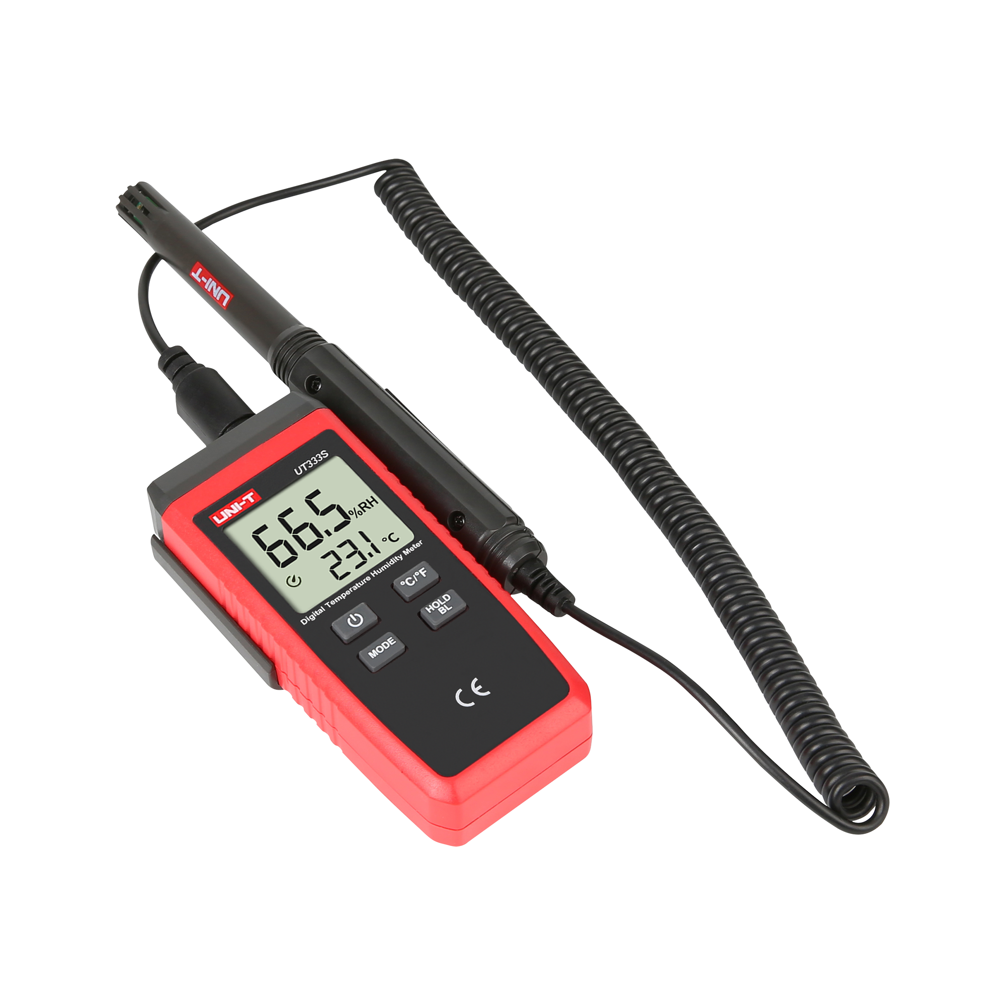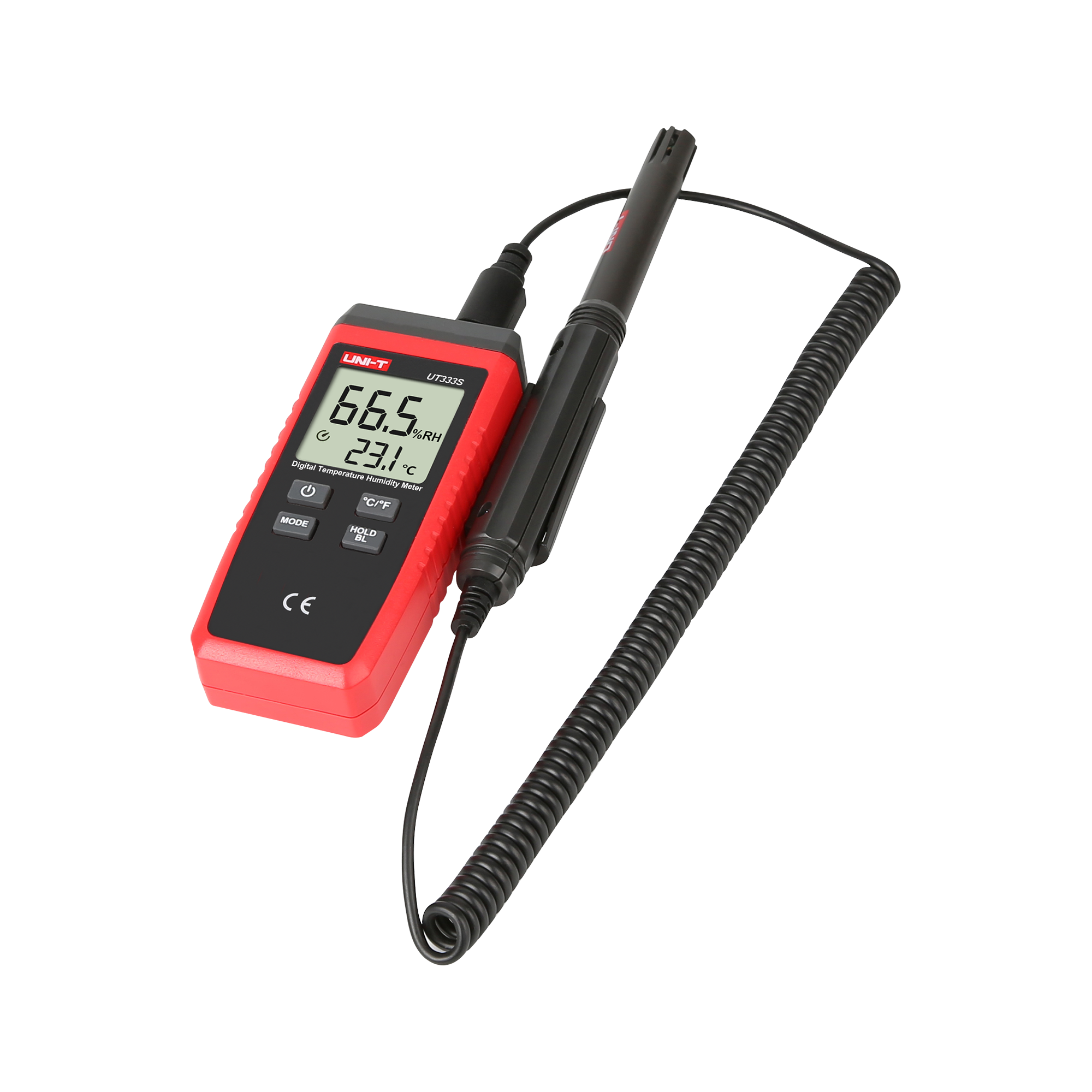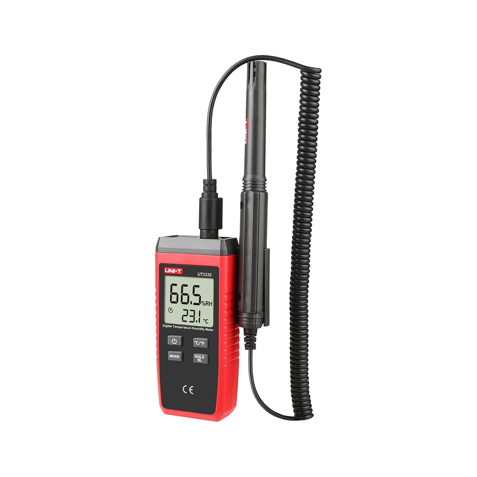 Miernik temperatury i wilgotności Uni-T UT333SUni-T UT333S to kompaktowy i precyzyjny miernik temperatury i wilgotności, idealny do zastosowań w środowiskach wewnętrznych, takich jak biura, magazyny, laboratoria oraz przy monitorowaniu warunków w pomieszczeniach mieszkalnych. Dzięki dokładnym pomiarom i łatwej obsłudze, UT333S jest doskonałym narzędziem do monitorowania warunków atmosferycznych.