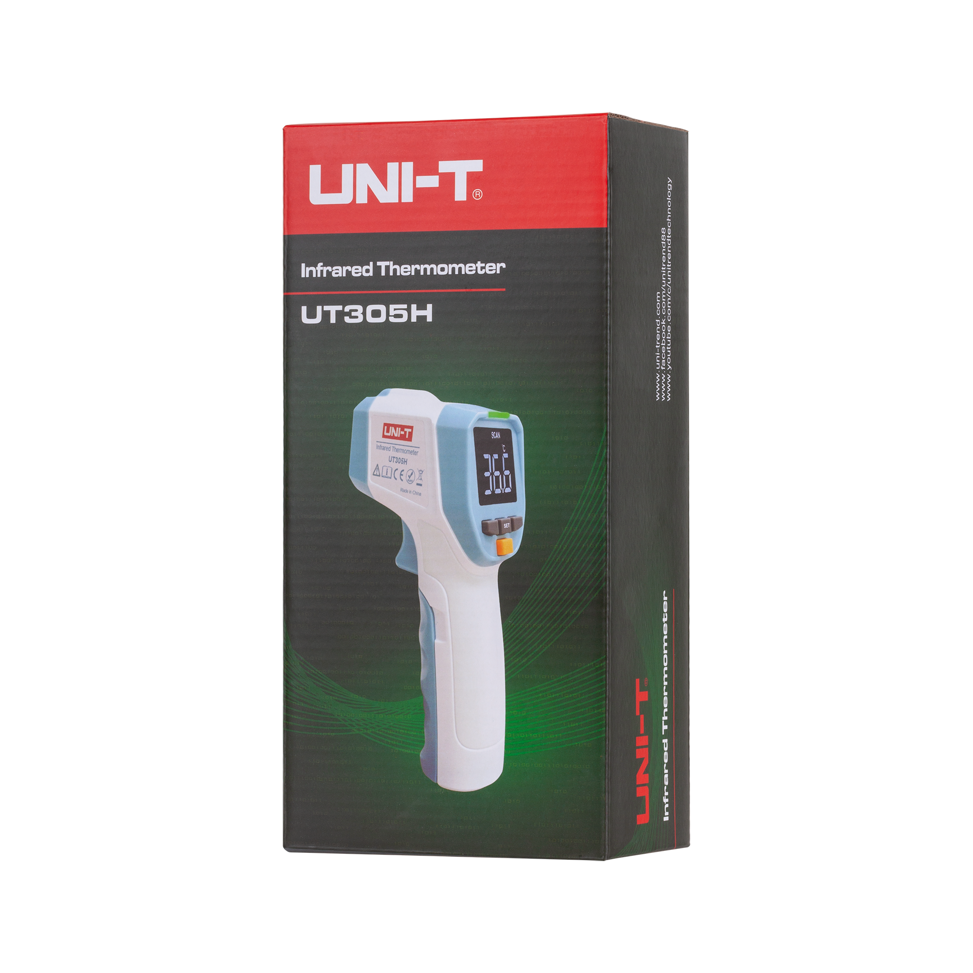 Miernik temperatury UNI-T UT305H, wykorzystując najnowszą technologię umożliwia dokonanie pomiarów temperatury w zakresie 32°C-42,9°. Duża dokładność urządzenia pozwala na szybką i precyzyjną kontrolę temperatury ciała, jak też innych elementów otoczenia, np. przedmiotów, jedzenia, płynów itp.