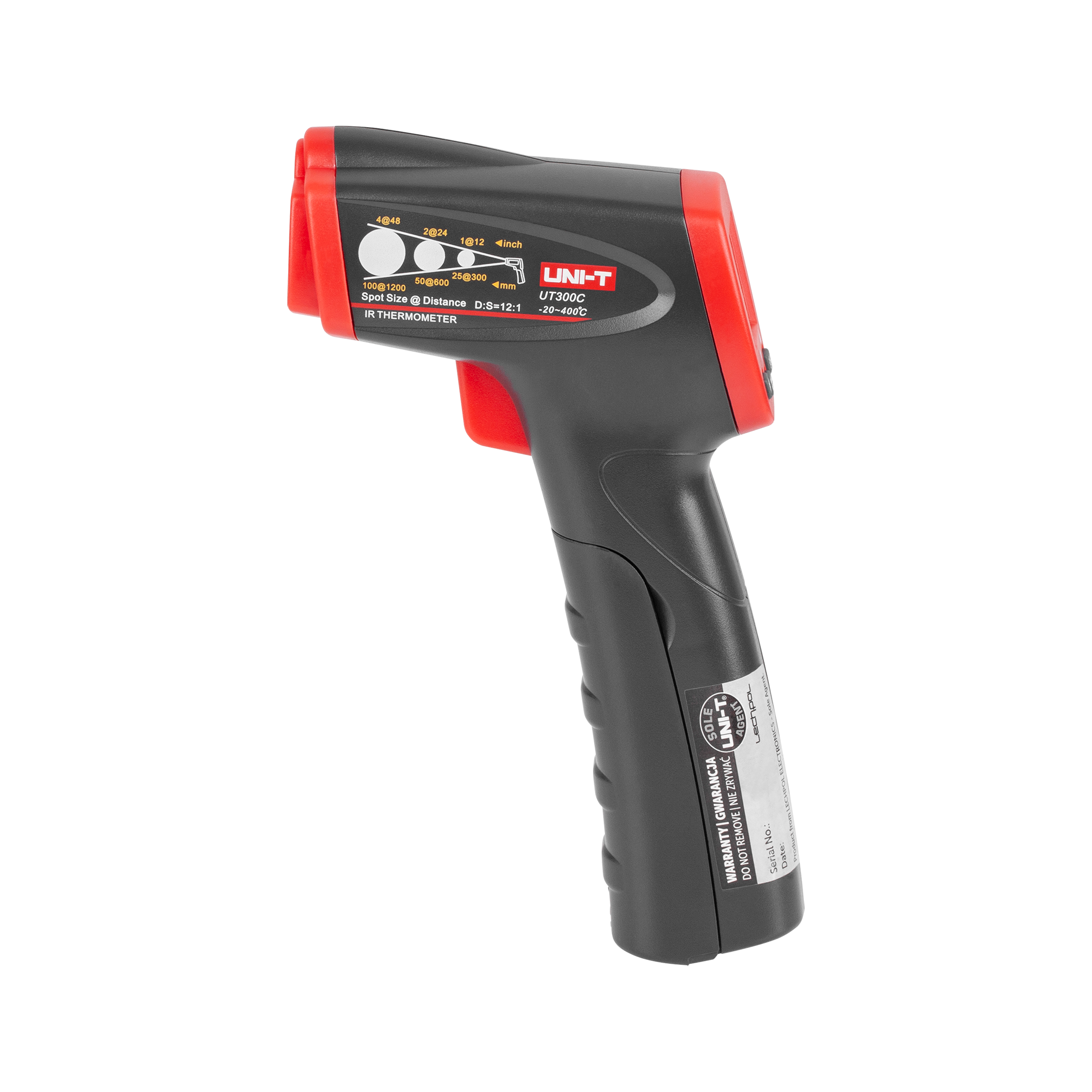 Ergonomiczny i wygodny w użytkowaniuUni-T UT300S oferuje wygodę użytkowania dzięki szerokiemu stosunkowi odległości do powierzchni testowanej wynoszącemu 12:1, co umożliwia precyzyjne pomiary z większej odległości. Szybki czas odpowiedzi wynoszący 500 ms oraz podświetlany ekran LCD zwiększają komfort pracy w różnych warunkach oświetleniowych. Dodatkowe funkcje, takie jak możliwość zamrożenia ostatniego wskazania oraz wybór jednostki temperatury °C/°F, zwiększają wszechstronność urządzenia.