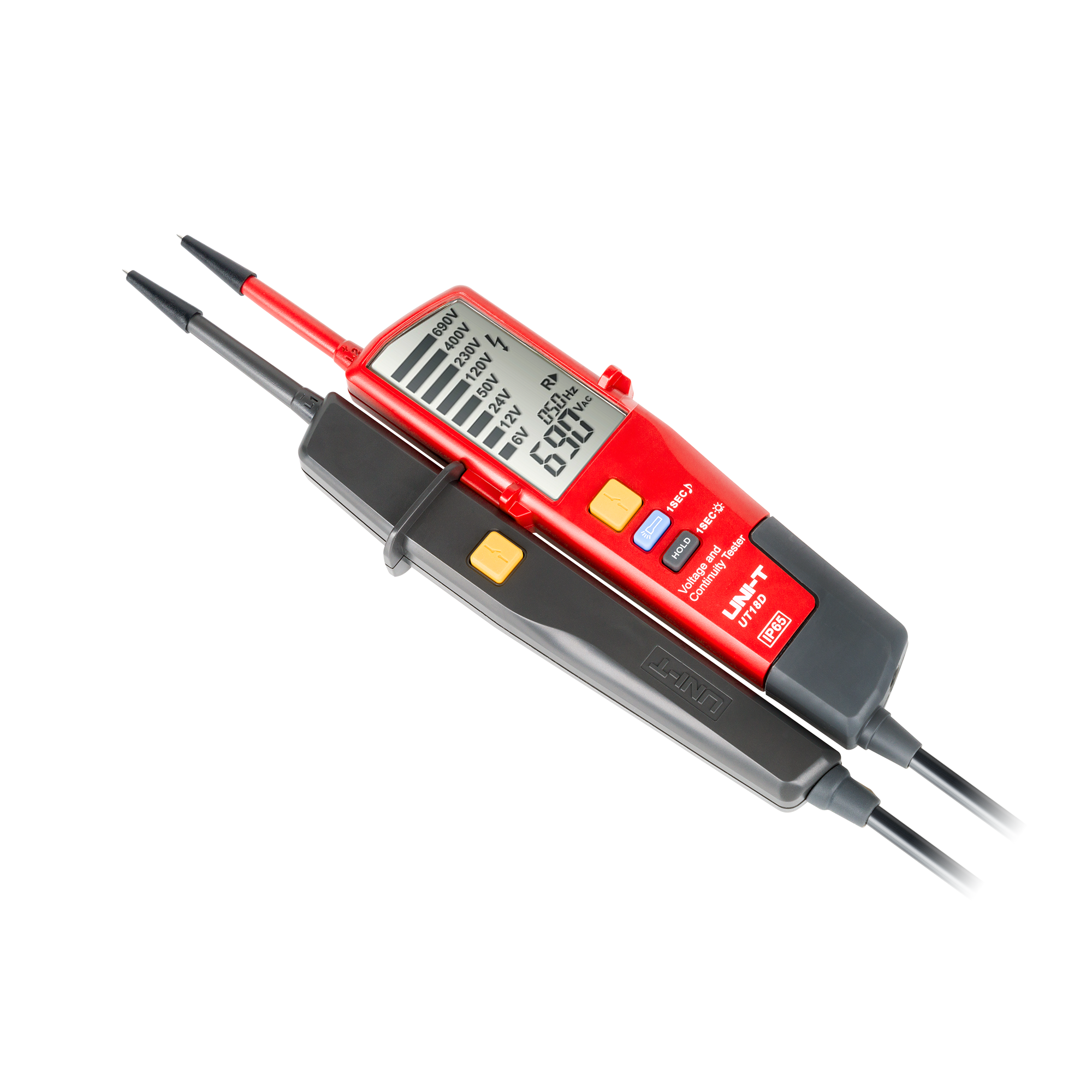 Zakresy Pomiarowe i FunkcjonalnośćUT18D oferuje szeroki zakres pomiarowy napięcia od 6 V do 690 V z dokładnością ±(1,5%+5). Umożliwia także testowanie ciągłości obwodu do 100 k? oraz detekcję polaryzacji, co zapewnia dokładną analizę stanu elektrycznego. Funkcja testowania RCD oraz automatyczna zmiana zakresów pomiarowych zwiększa jego uniwersalność.