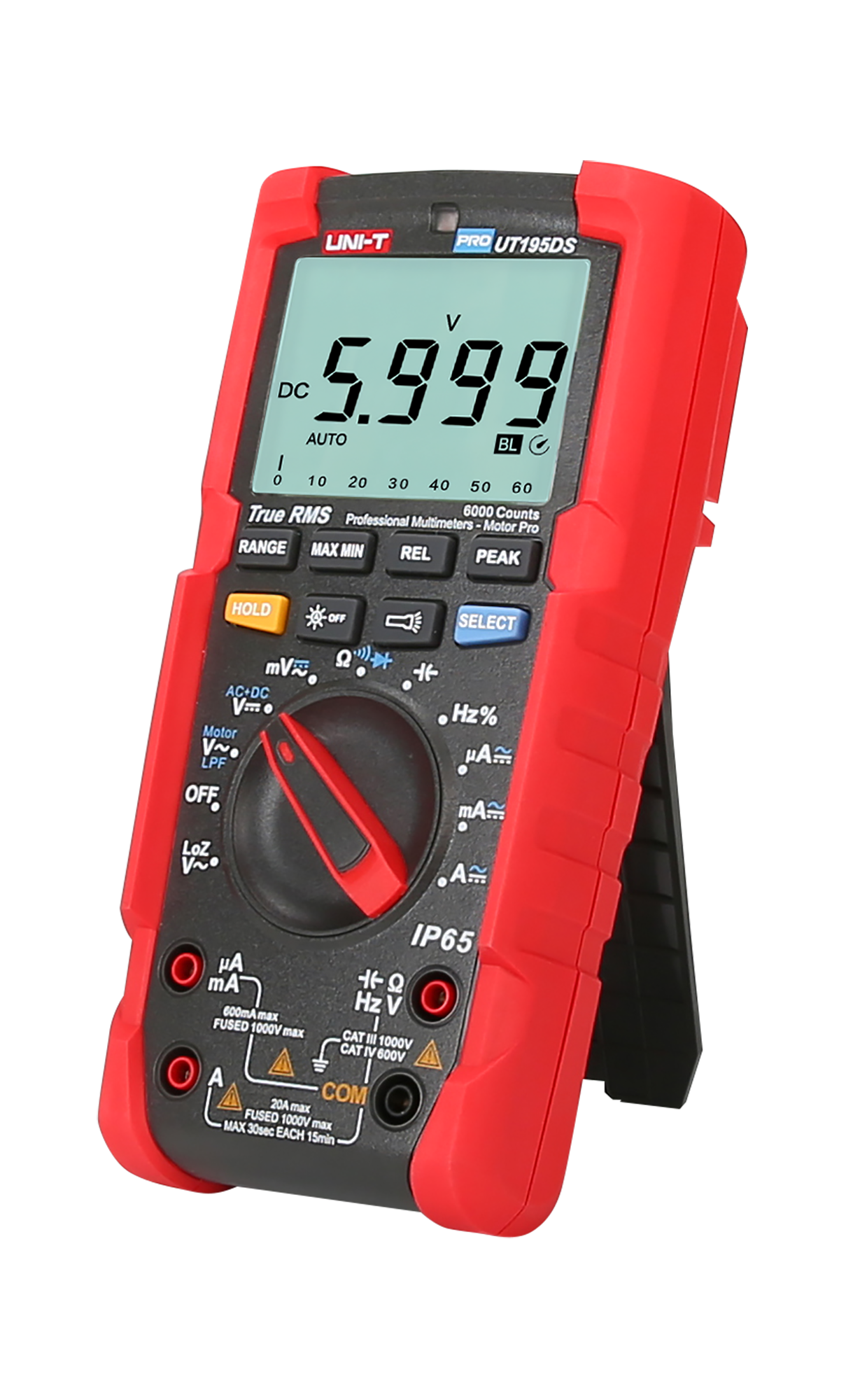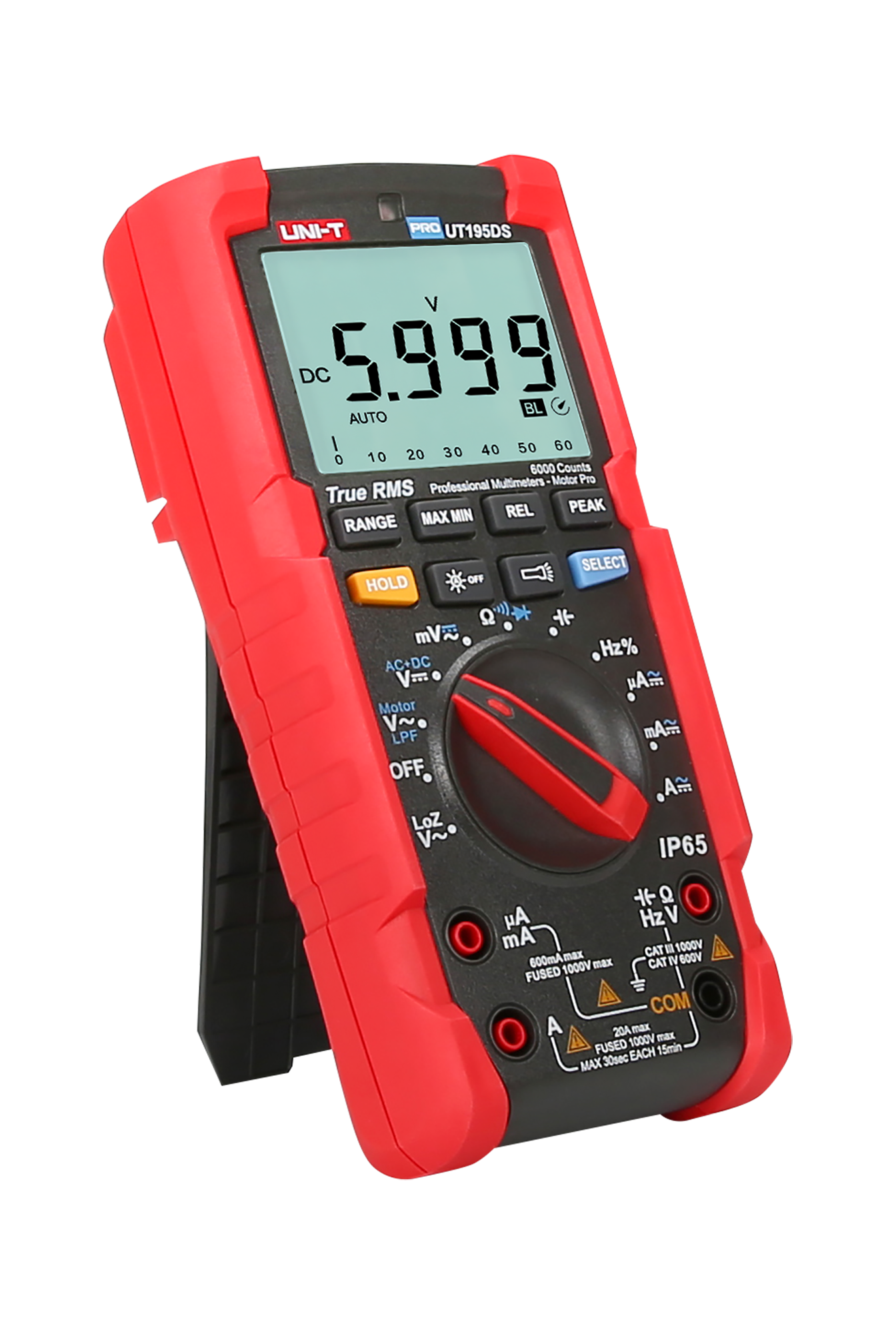 Natężenie prądu zmiennego AC: 600 µA / 6000 µA / 60 mA / 600 mA / 6 A / 20 A ±(1%+3)