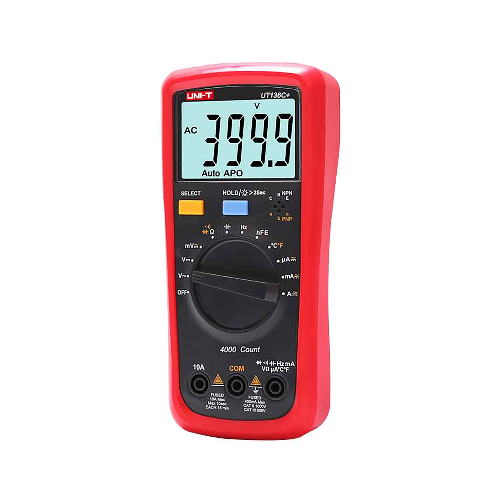Automatyzacja i wygoda użytkowaniaUT136C+ został wyposażony w funkcje automatycznej zmiany zakresów pomiarowych, co ułatwia obsługę i przyspiesza pracę. Funkcja zamrożenia ostatniego wskazania pozwala na dokładne odczytanie wyników, a wskaźnik niskiego poziomu baterii oraz automatyczne wyłączanie dbają o dłuższą żywotność urządzenia. Podświetlany wyświetlacz o rozmiarze 56,5 x 36 mm zapewnia doskonałą czytelność, nawet w słabym oświetleniu.