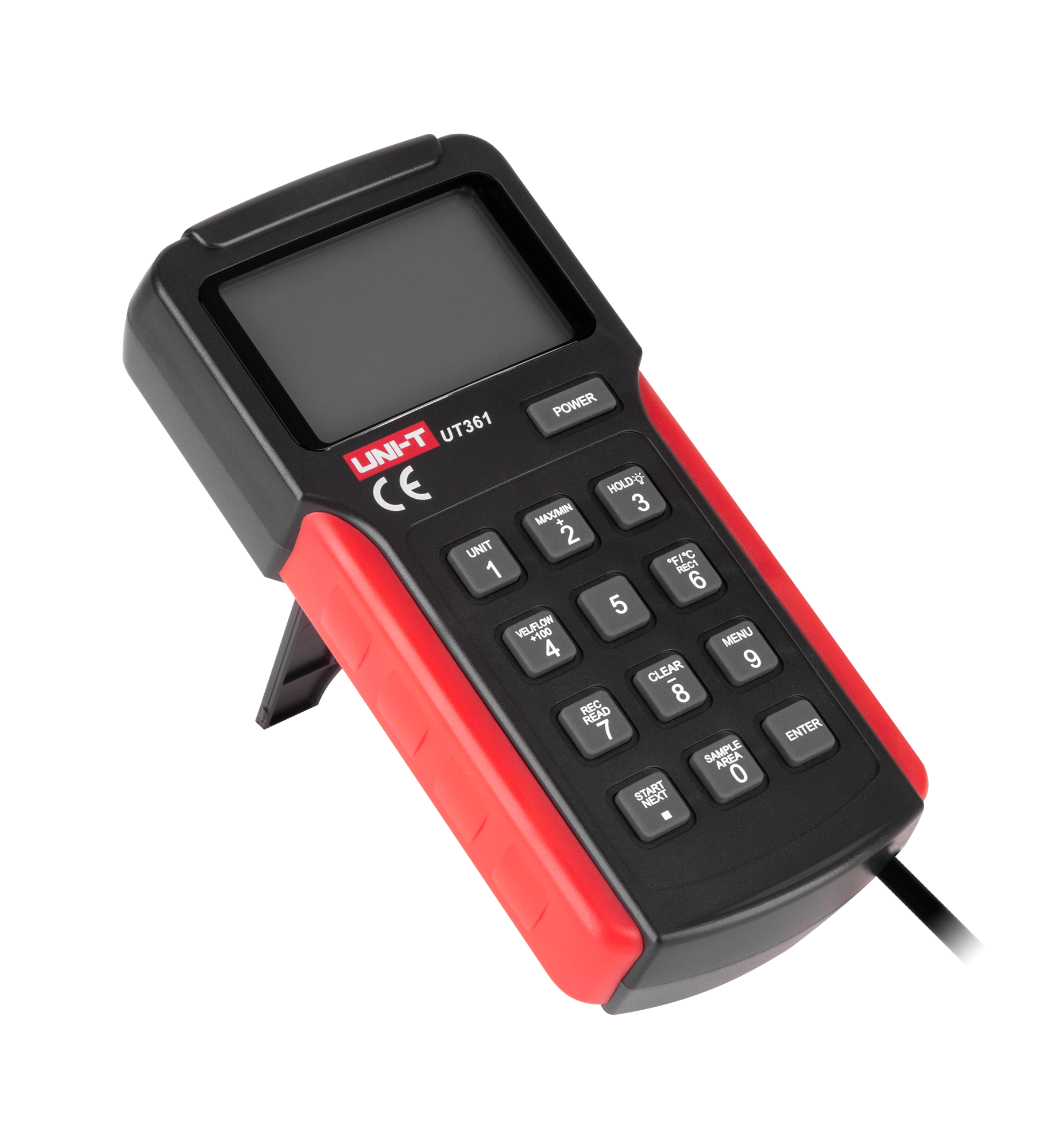 Funkcjonalność i wygoda użytkowaniaWyposażony w podwójny wyświetlacz, Uni-T UT361 umożliwia jednoczesne śledzenie prędkości wiatru oraz temperatury, co zwiększa wygodę pracy. Funkcja zamrożenia ostatniego wskazania oraz tryb MAX/MIN pozwalają na łatwe monitorowanie i analizowanie danych. Dodatkowo, możliwość zapisu pomiarów ułatwia długoterminowe śledzenie i analizowanie wyników. Automatyczne wyłączenie po około 10 minutach nieaktywności oraz wskaźnik niskiego naładowania baterii zapewniają oszczędność energii i wygodę użytkowania.