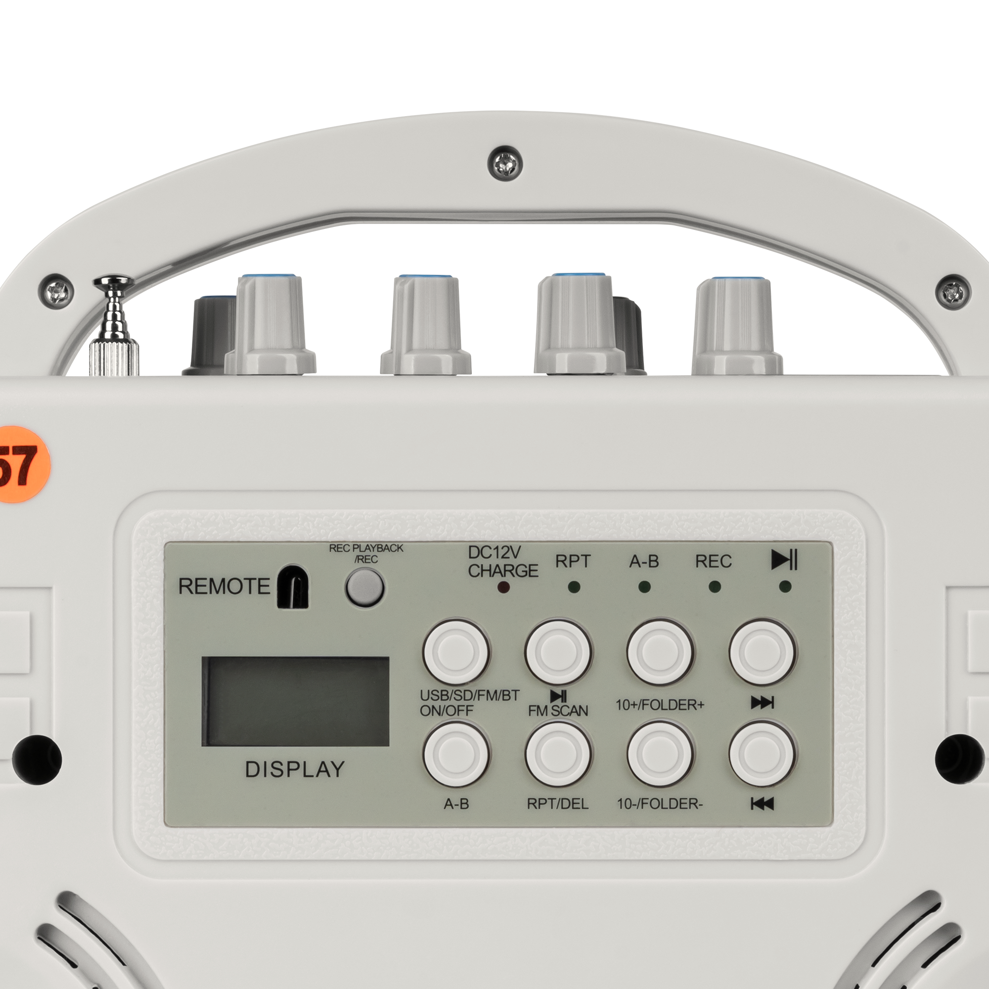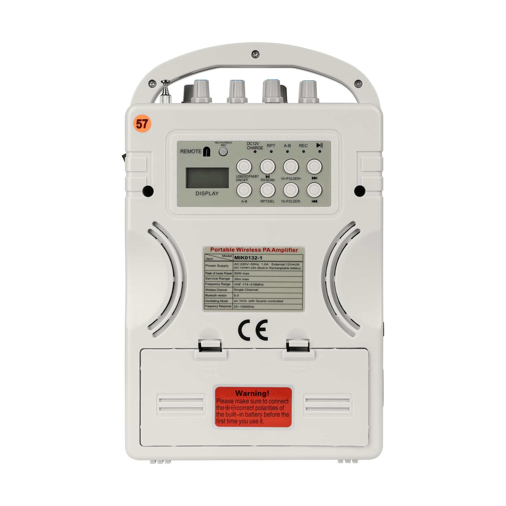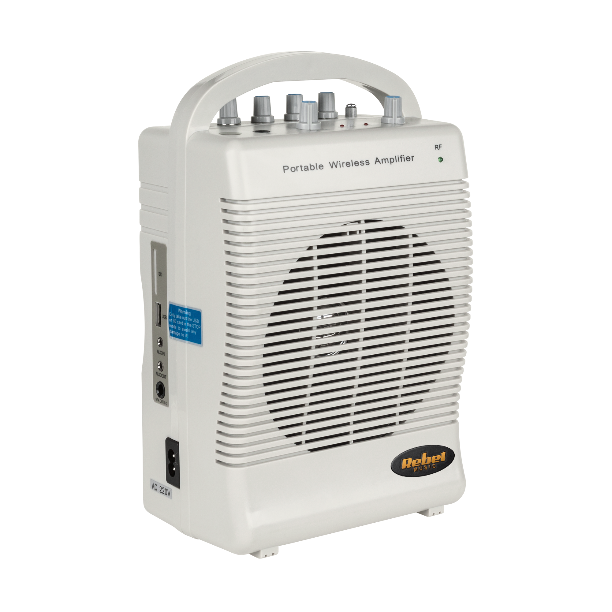 Szerokie możliwości podłączeniaUrządzenie posiada wejście jack 6,5 mm do podłączenia dynamicznego mikrofonu przewodowego oraz wejście AUX dla dodatkowych źródeł dźwięku. Wyjście głośnikowe (8 Ohm) umożliwia podłączenie zewnętrznego nagłośnienia.