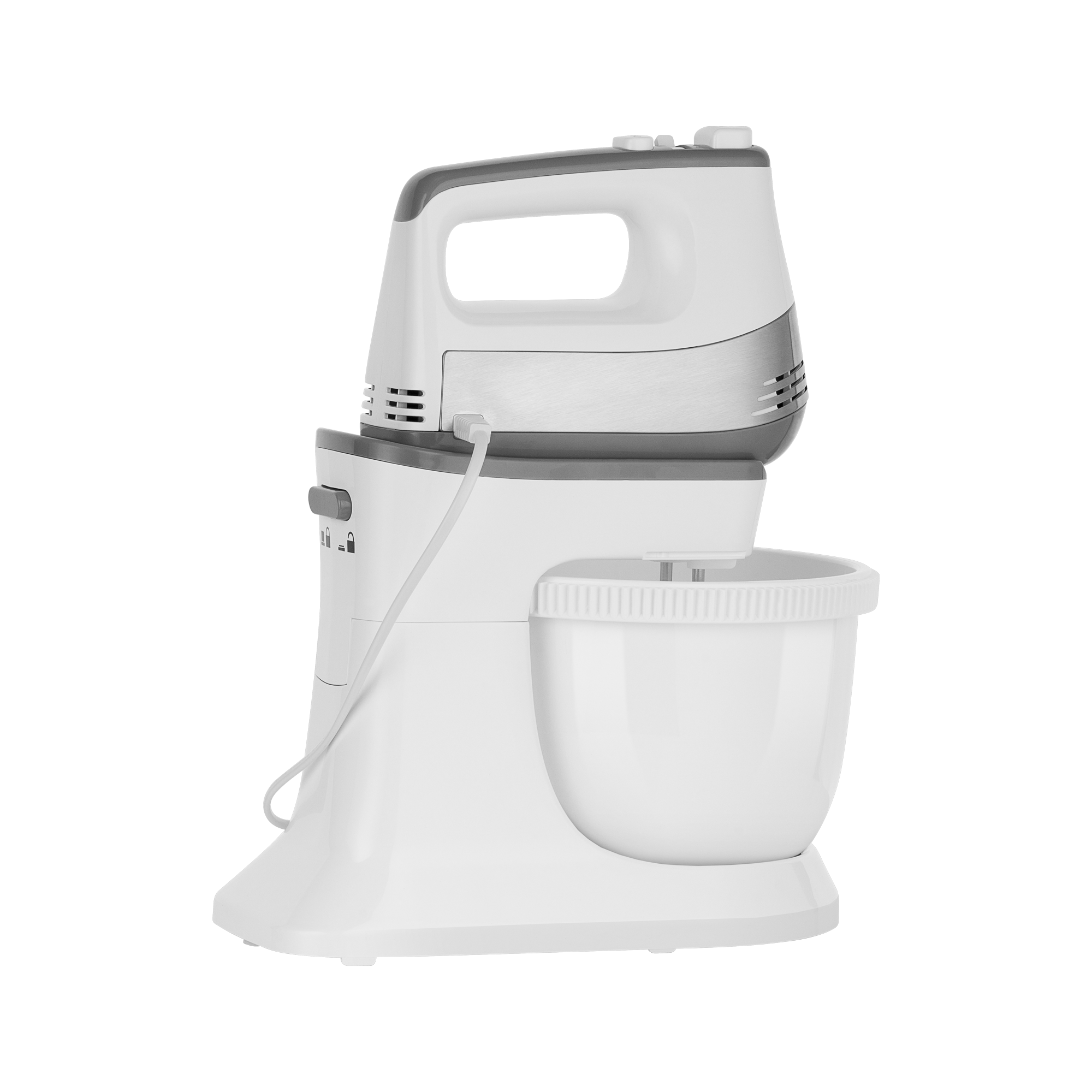 W zestawie: misa, podstawa, trzepaczki, mieszadła, instrukcja obsługi