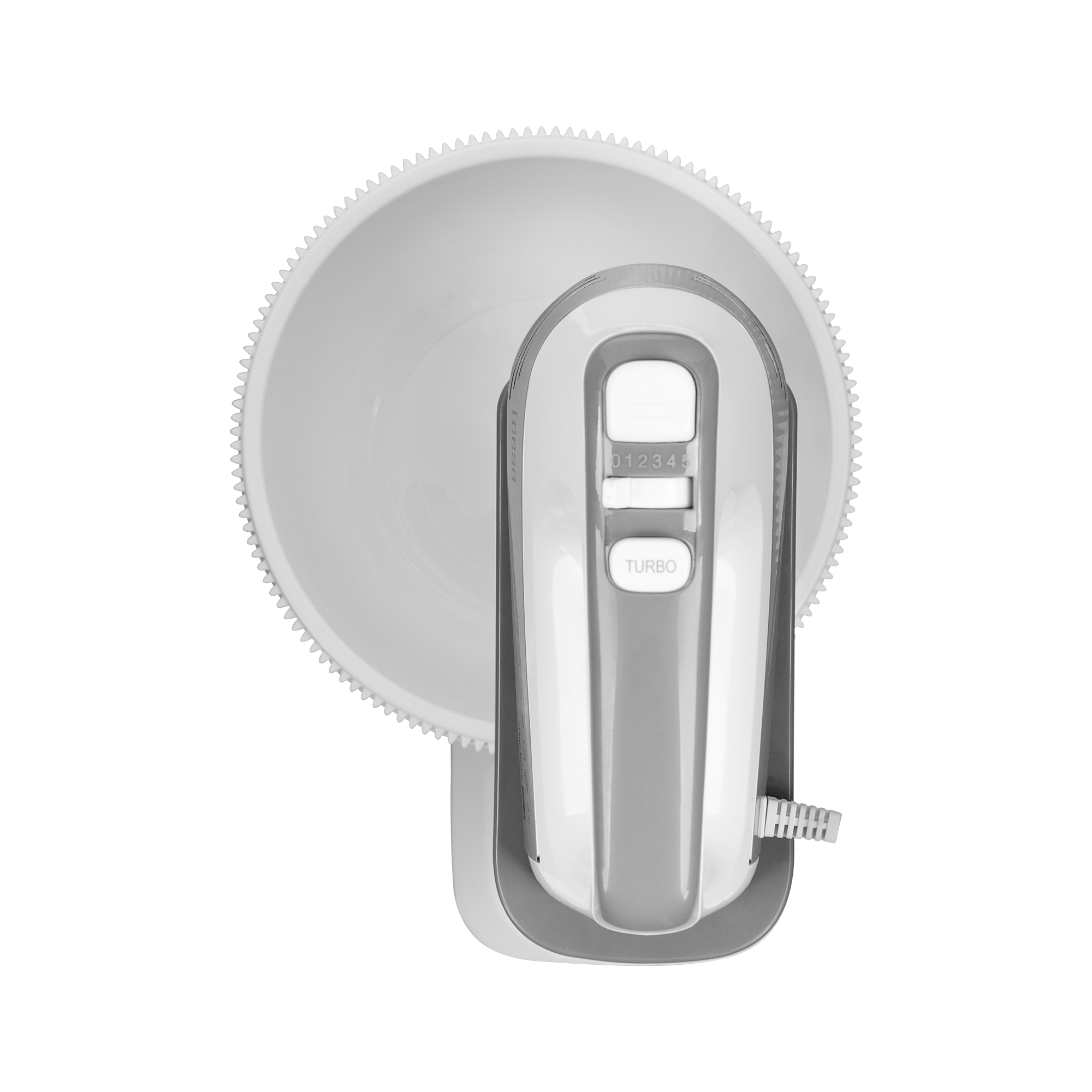 Odłączany mikserTeesa stawia na funkcjonalność! Jeśli mieszasz mniejszą ilość produktów albo potrzebujesz większej swobody podczas miksowania, wystarczy, że naciśniesz jeden przycisk, aby odpiąć urządzenie od misy i zamienić je w klasyczny mikser ręczny.