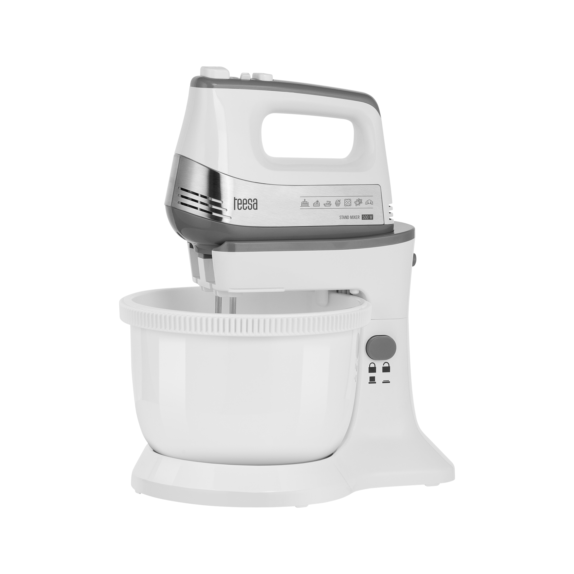 Mikser z misą obrotową Teesa TSA3548Każdy miłośnik kuchennych rewolucji potrzebuje dobrego sprzętu AGD, który uprzyjemni testowanie kolejnych przepisów. Mikser ręczny z obrotową misą o pojemności 3,4 litra to bez wątpienia urządzenie, które powinno znaleźć się w Twojej kuchni. Pracując z mocą 500 W ułatwi przygotowywanie przepysznych wypieków i pozwoli Ci zaskoczyć gości!