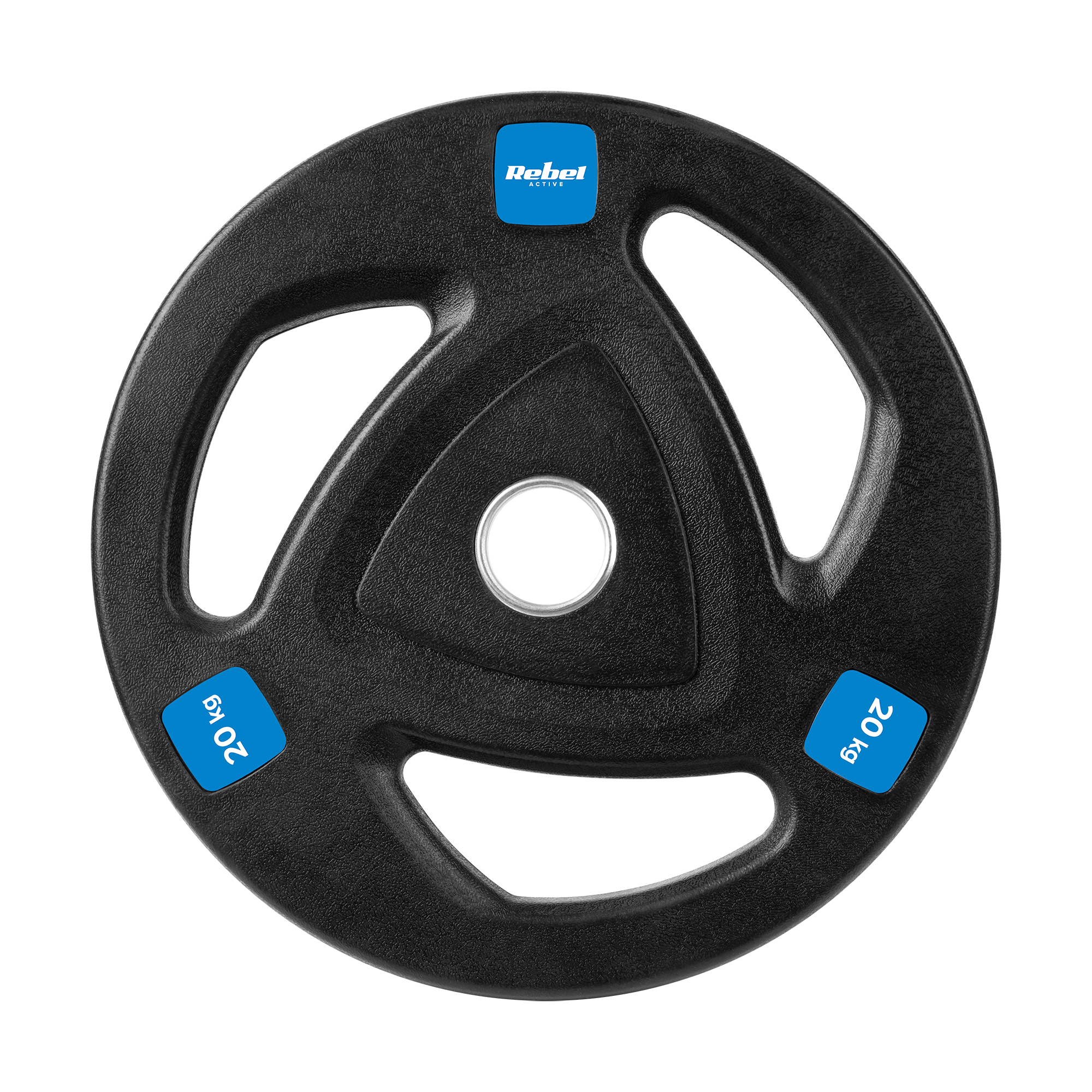 Talerz olimpijskiObciążenie Rebel Active pozwala trenować wznosy i przysiady przy pomocy samych ciężarków. Możesz też założyć obciążenie na gryf. Talerz ma większe otwory niż tradycyjne obciążenia, co pozwala na używanie ich z większością sztang olimpijskich. Otwór talerza RBA-2112-1 dopasowany jest do standardu gryfów olimpijskich i wynosi 51 mm.