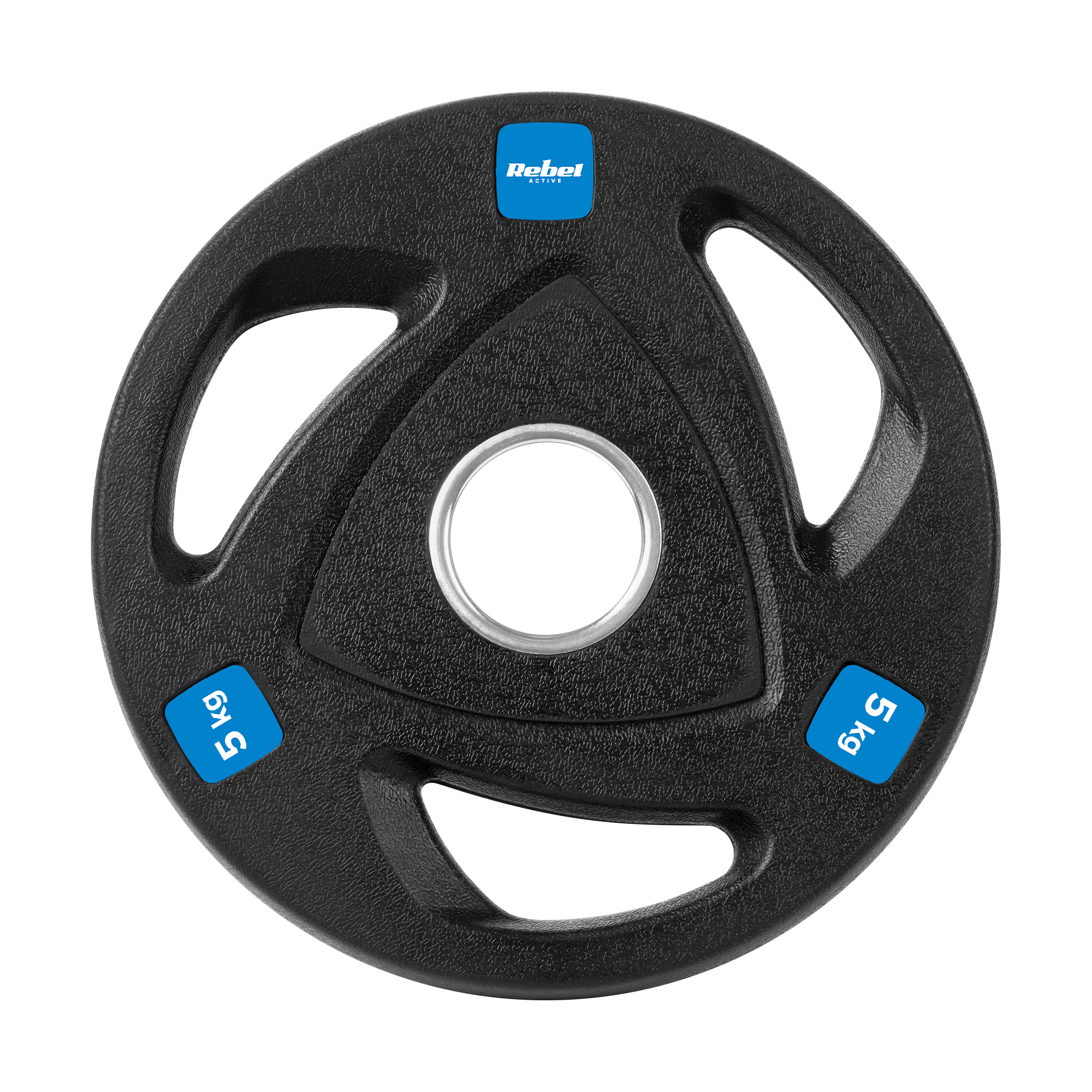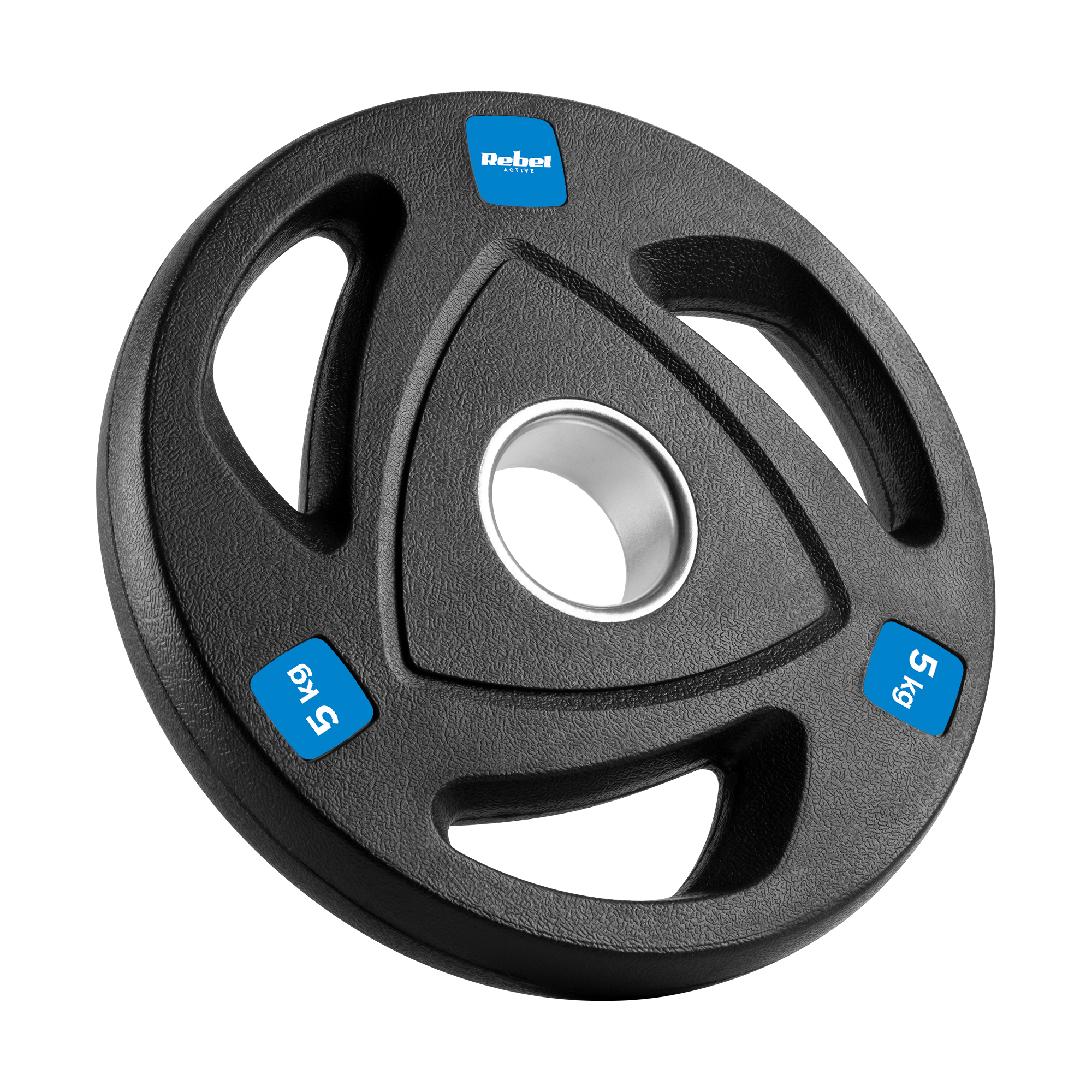 Talerze olimpijskieZestaw Rebel Active pozwala trenować wznosy i przysiady przy pomocy samych ciężarków. Możesz też założyć obciążenia na gryf. Talerze mają większe otwory niż tradycyjne obciążenia, co pozwala na używanie ich z większością sztang olimpijskich. Otwór talerzy w zestawie RBA-2109 dopasowany jest do standardu gryfów olimpijskich i wynosi 51 mm.