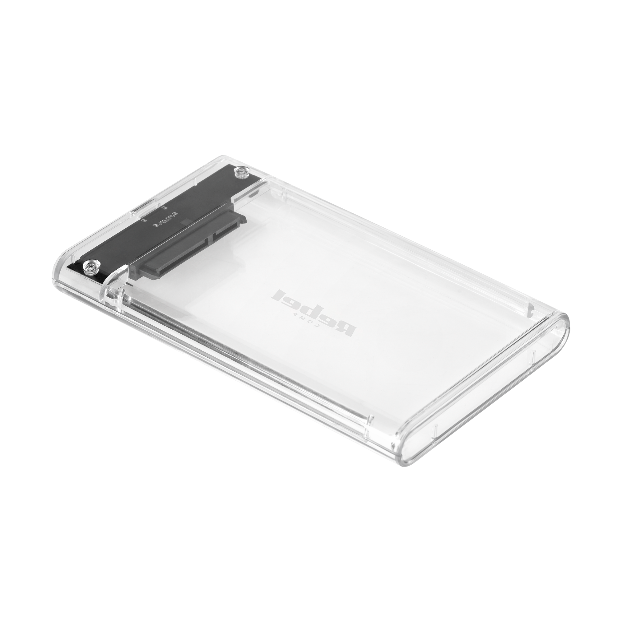 Obudowa dysku Obudowa dysku 2,5" SATA USB-C 3.1 Rebel zapewnia szybki transfer do 6 Gbps, umożliwiając płynną pracę z plikami. Obsługa dysków o pojemności do 2 TB sprawia, że bez trudu pomieści ważne dokumenty, multimedia czy kopie zapasowe. Przezroczysta konstrukcja i zasilanie przez USB dodają jej nowoczesnego wyglądu i funkcjonalności, eliminując potrzebę dodatkowych przewodów.