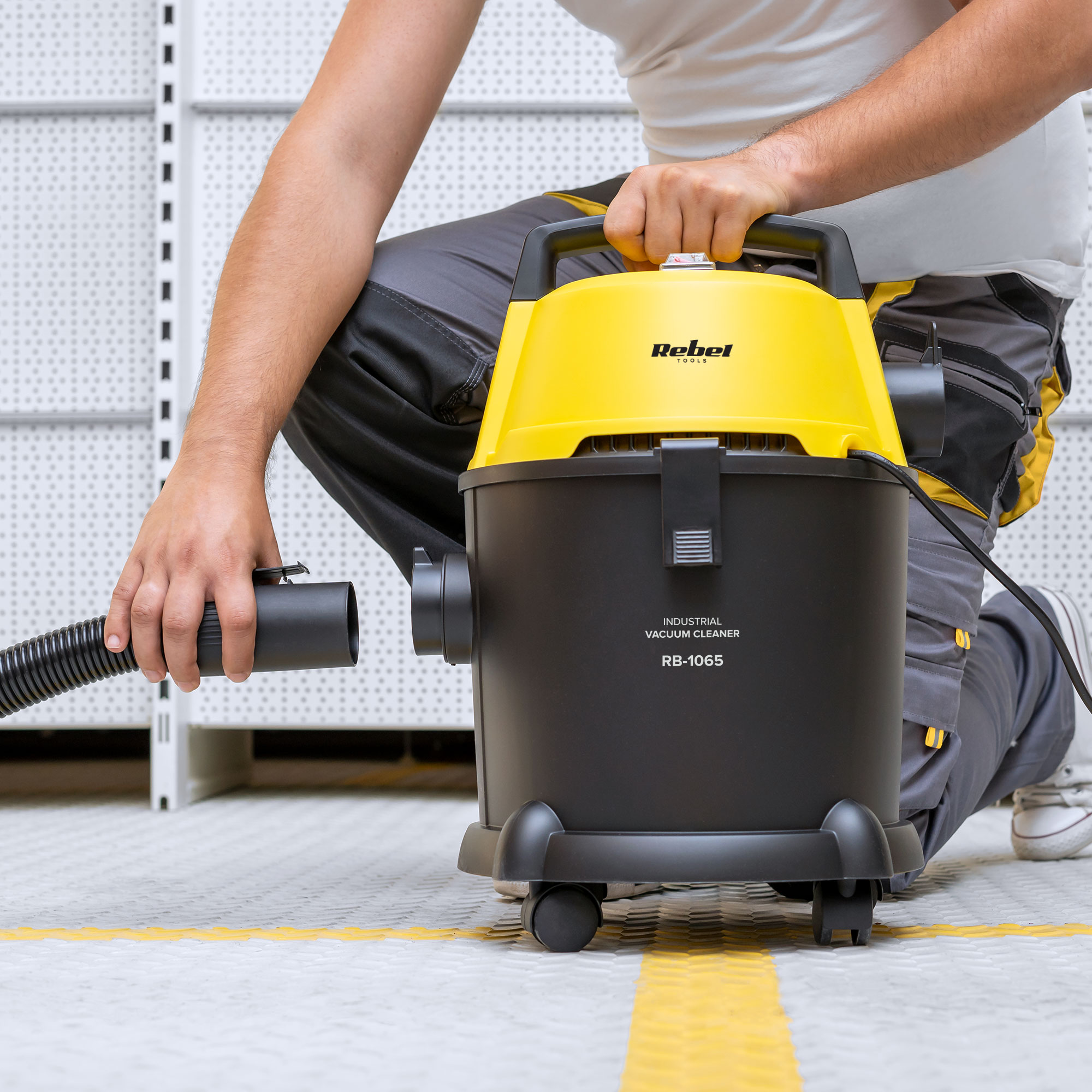Wydajny i bezpiecznyPrzemysłowy odkurzacz Rebel posiada duży, 15-litrowy pojemnik na zanieczyszczenia, co pozwala na długą pracę, bez konieczności opróżniania. To na co, warto zwrócić uwagę to uniwersalny filtr HEPA, który nadaje się zarówno do zanieczyszczeń suchych jak też mokrych. Wraz z odkurzaczem w zestawie znalazły się 4 wymienne końcówki, które pozwolą Ci usunąć zanieczyszczenia z różnych powierzchni i trudno dostępnych miejsc.