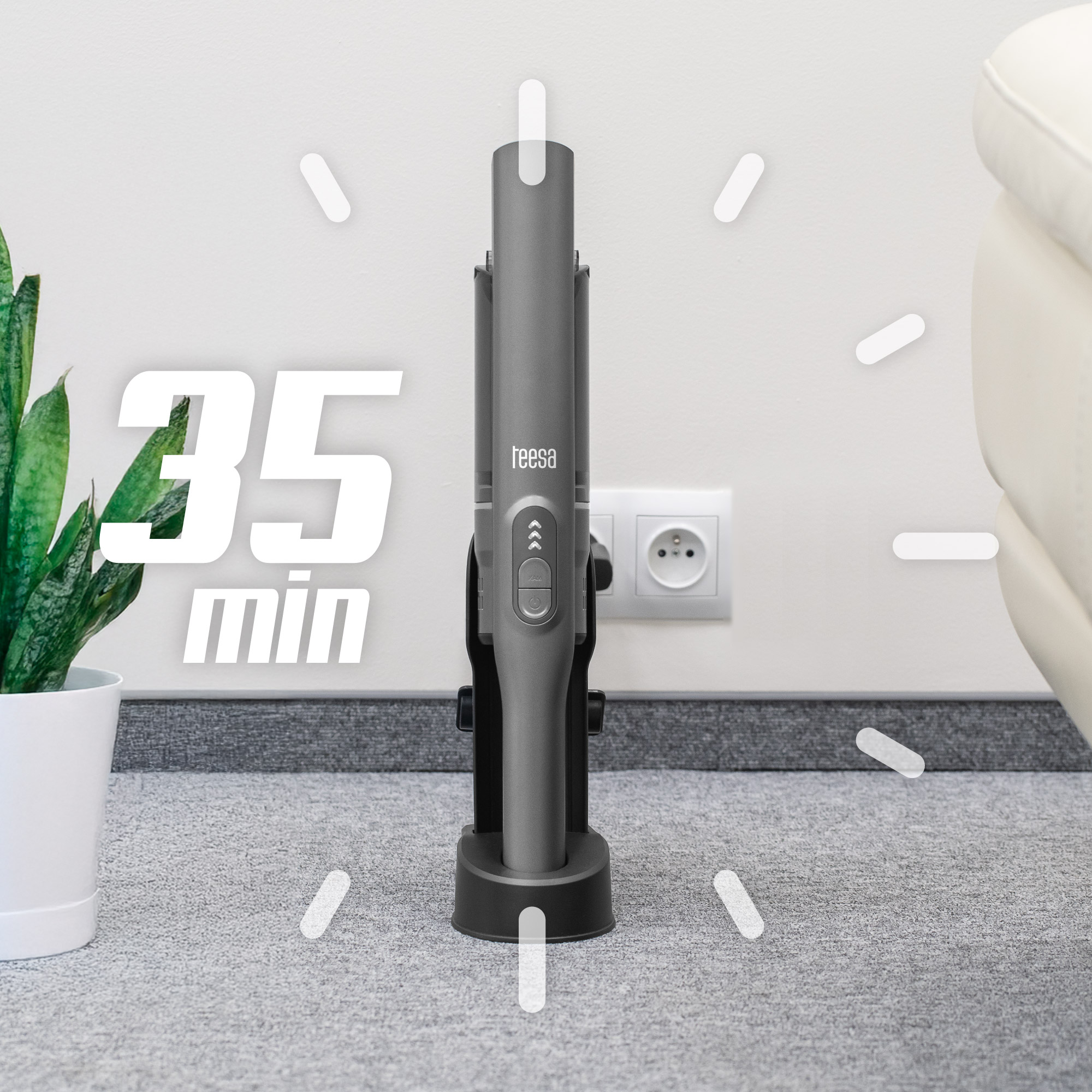 Wydajna bateria Akumulator o pojemności 2200 mAh zapewnia 35 minut nieprzerwanego działania. Tak długi czas pracy sprawia, że bez problemu odkurzacz Teesa pomoże sprzątnąć auto lub wyczyścić dowolne powierzchnie w Twoim domu.