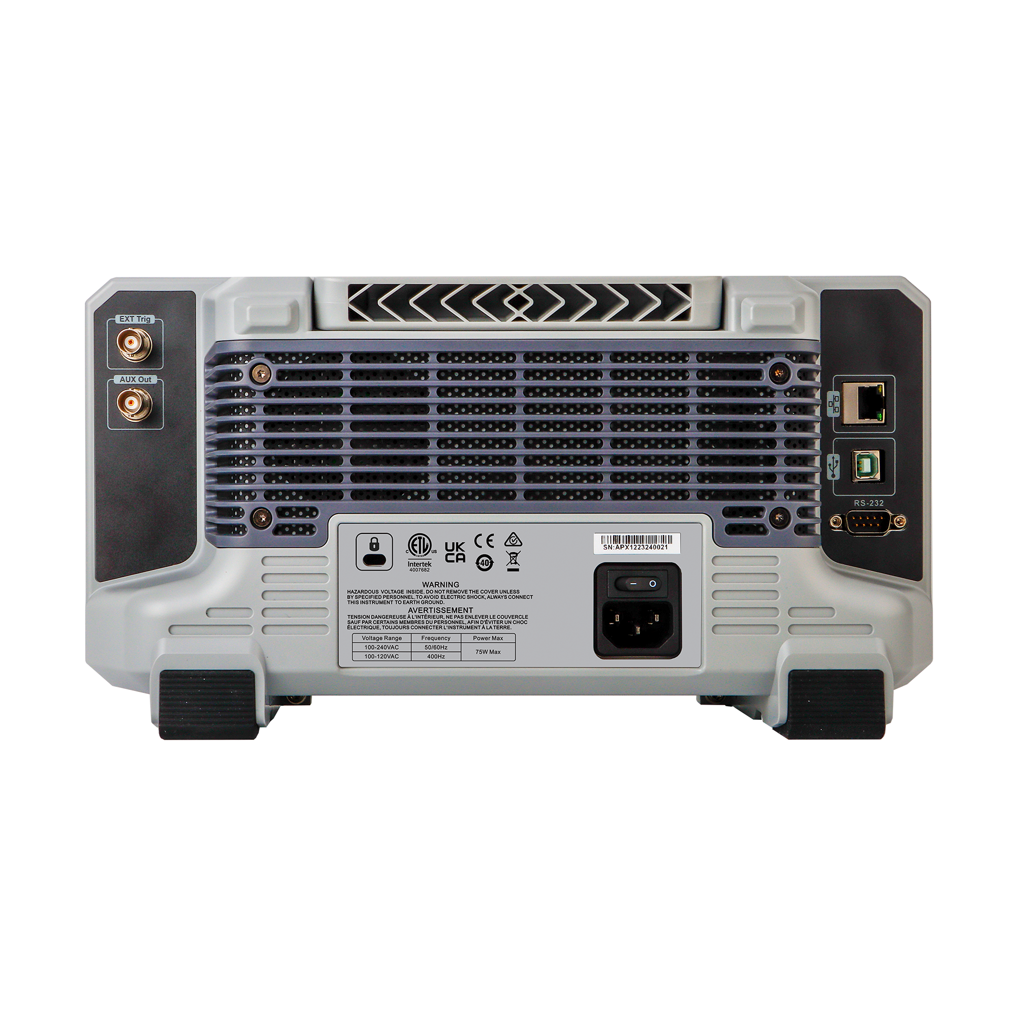 Interfejsy: USB-Host, USB-Device, LAN, EXT Trig, AUX (Trig Out, Pass/Fail, DVM)
