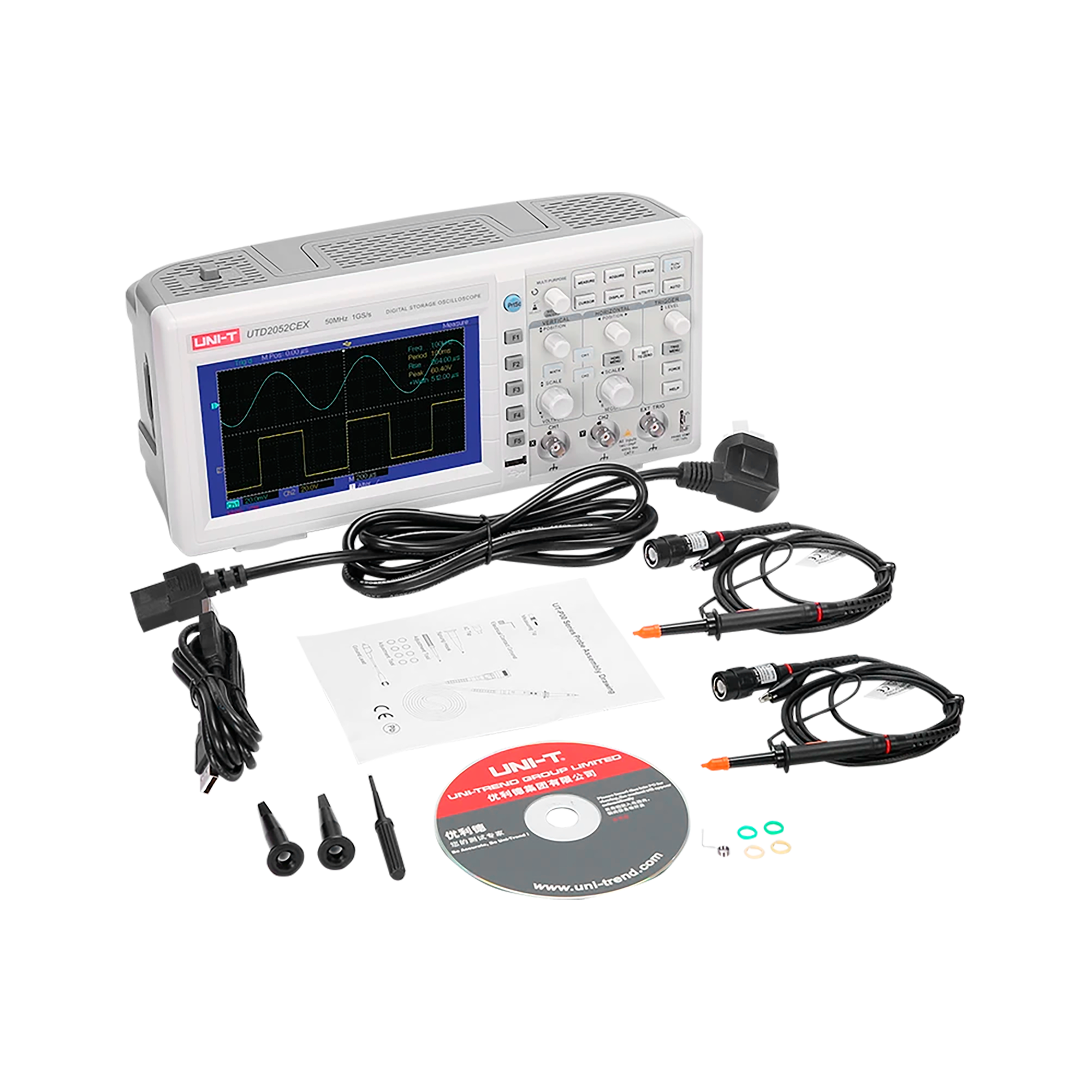 Oscyloskop Uni-T UTD2052CEX+Oscyloskop cyfrowy Uni-T UTD2052CEX+ to nowoczesne i wszechstronne narzędzie pomiarowe stworzone z myślą o inżynierach, serwisantach oraz pasjonatach elektroniki. Dzięki szerokości pasma 50 MHz, próbkowaniu 1 GS/s i bogatym funkcjom analizy sygnału, urządzenie zapewnia wysoką precyzję pomiarów oraz wygodę pracy na dużym, czytelnym ekranie.