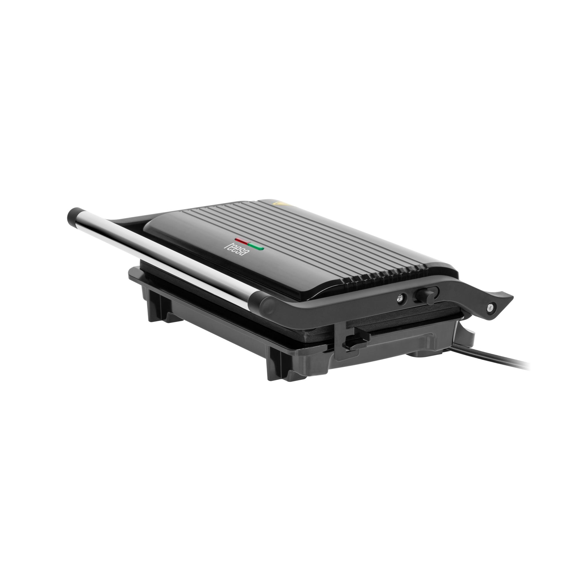 Ruchomy zawiasNiezależnie od tego, czy przygotowujesz grube kanapki panini, czy też cienkie placki, grill elektryczny Teesa dostosuje się do Ciebie! Ruchomy zawias umożliwia dostosowanie opiekacza do różnych rozmiarów i kształtów składników, co pozwala swobodnie opiekać żywność o różnej grubości.