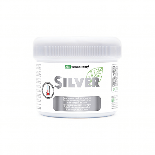 AG Silver to pasta termoprzewodząca z dodatkiem związków srebra. Wysoka przewodność cieplna srebra rekompensuje niedostateczną przewodność cieplną związków węglowo-krzemowych.