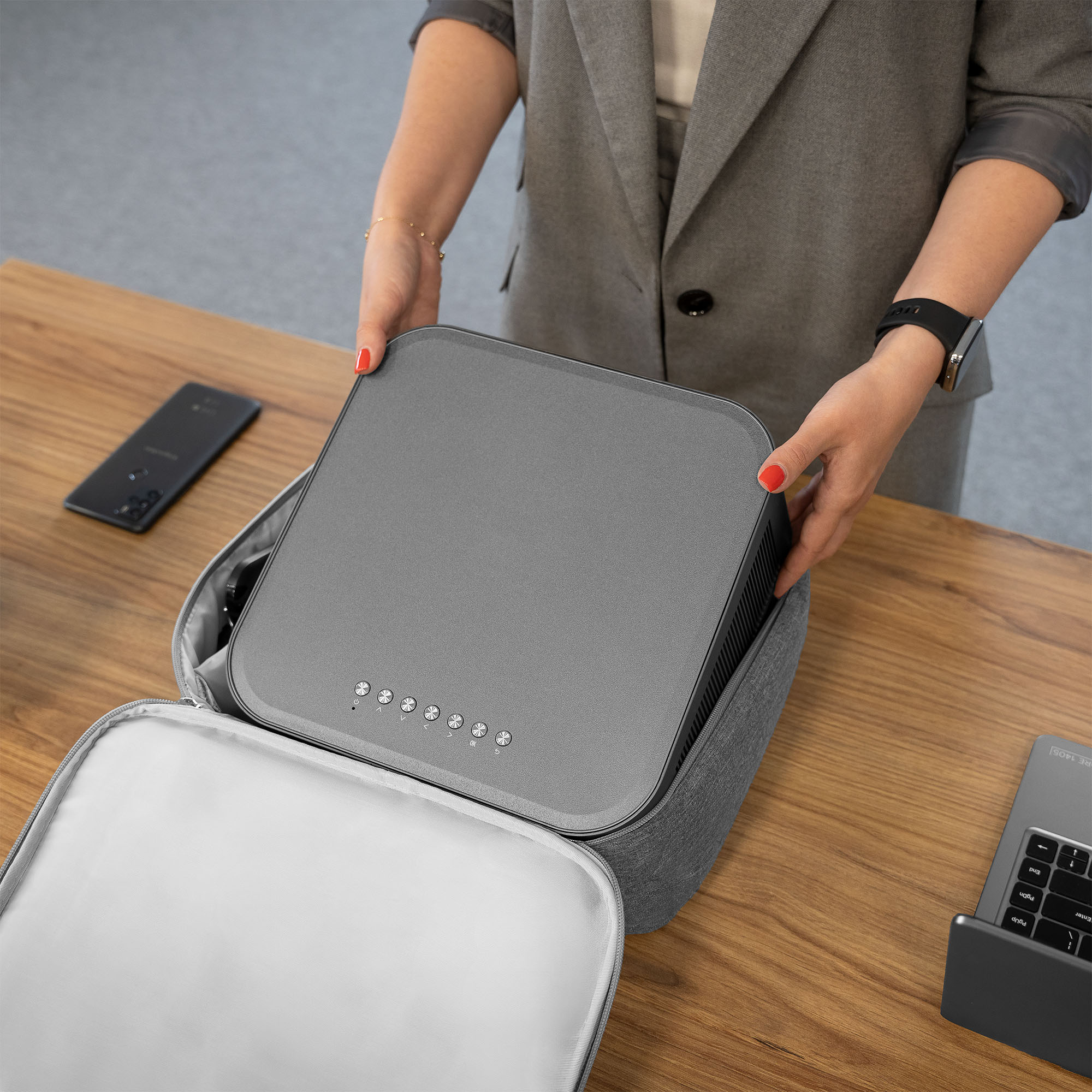 Stylowy designTorba na projektor Kruger&Matz posiada nowoczesny, minimalistyczny design, który pasuje do różnych wnętrz i stylów. Dzięki temu, niezależnie od tego, gdzie używasz projektora, zawsze będziesz prezentował się profesjonalnie.