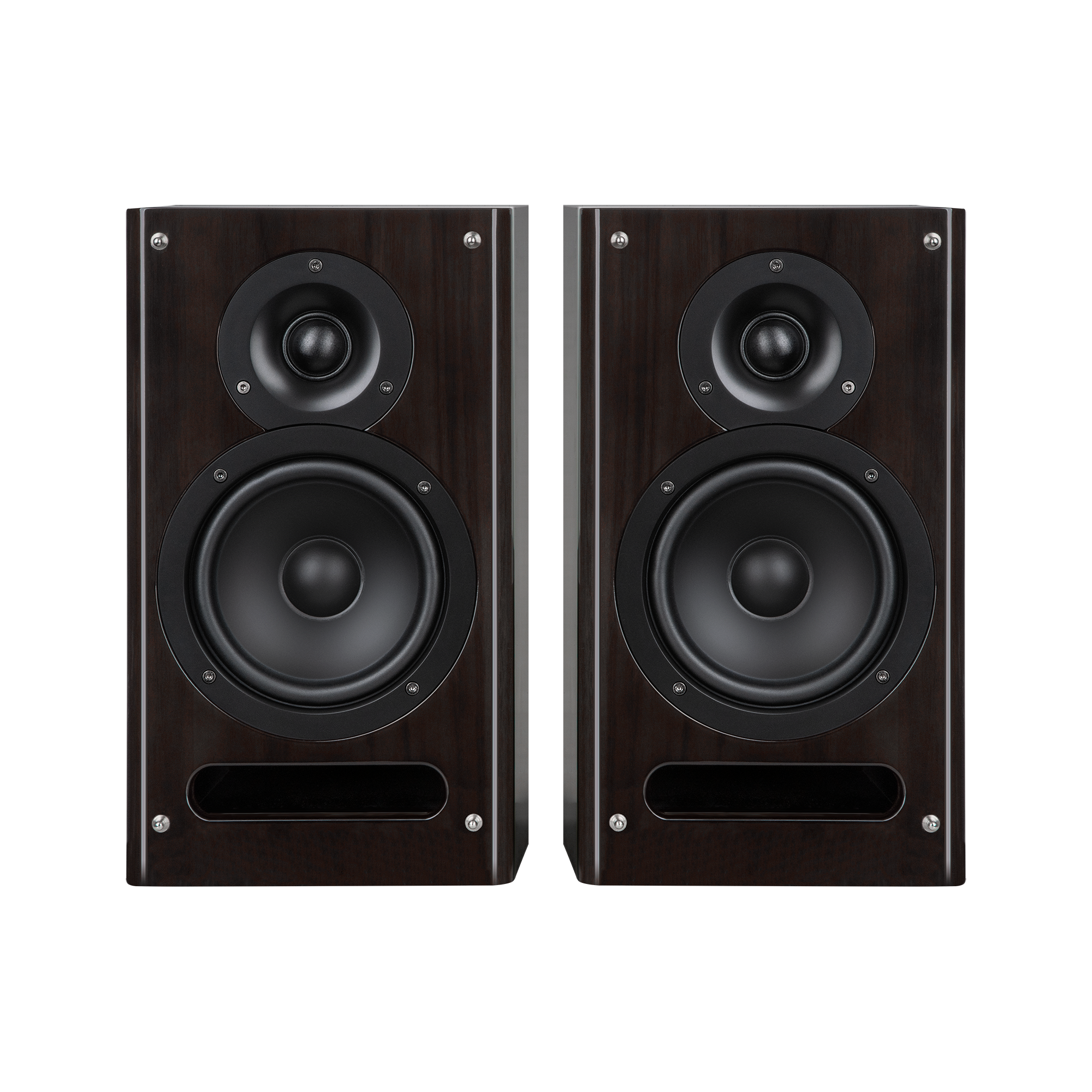 Półkowe kolumny głośnikowe KM1995-SPoczuj zrównoważony dźwięk z kolumn w mini wieży KM 1995. W stylowej obudowie zamknięte zostały dwa przetworniki: 2-calowy głośnik wysokotonowy, który odpowiada za przetwarzanie dźwięków z góry pasma oraz 4,5-calowy subwoofer, który zapewnia głębokie brzmienie najniższych tonów. Kolumny półkowe KM 1995-S to połączenie doskonałego brzmienia i stylowego wyglądu. Fornirowana obudowa w kolorze drewna w połączeniu z czarnymi maskownicami nadaje kolumnom klasy oraz sprawia, że będą prezentować się doskonale w każdym wnętrzu.
