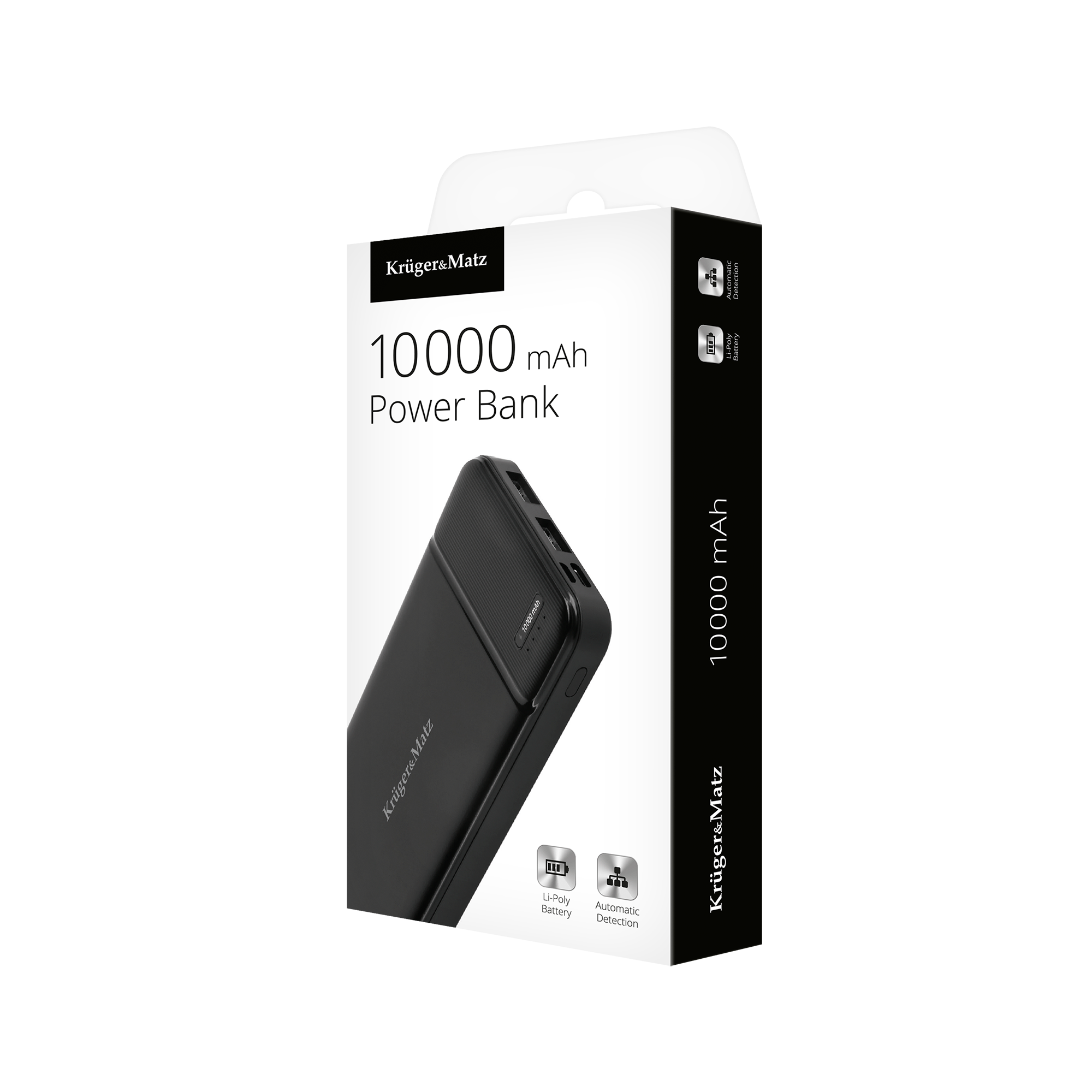 Power bank 10000 mAh Kruger&MatzJeśli Twoja praca wymaga od Ciebie częstego korzystania z urządzeń mobilnych w terenie, gdzie masz ograniczony dostęp do prądu, warto zawsze mieć pod ręką power bank. Kruger&Matz KM0903, dzięki dużej pojemności 10 000 mAh swobodnie naładuje Twój smartfon, tablet oraz wiele innych urządzeń. Dzięki dwóm portom USB KM0903 pozwoli Ci naładować jednocześnie dwa urządzenia. Wystarczy podłączyć kabel, a urządzenie samo wykryje połączenie i rozpocznie pracę. Power bank Kruger&Matz posiada szereg zabezpieczeń: przed przepięciem, przeciążeniem, przeładowaniem, głębokim rozładowaniem, a stan jego baterii możesz kontrolować dzięki czterem diodom umieszczonym na czarnej, solidnej obudowie. Wejścia USB typu C i micro USB pozwalają na komfortowe ładowanie urządzenia za pomocą wybranego typu kabla.
