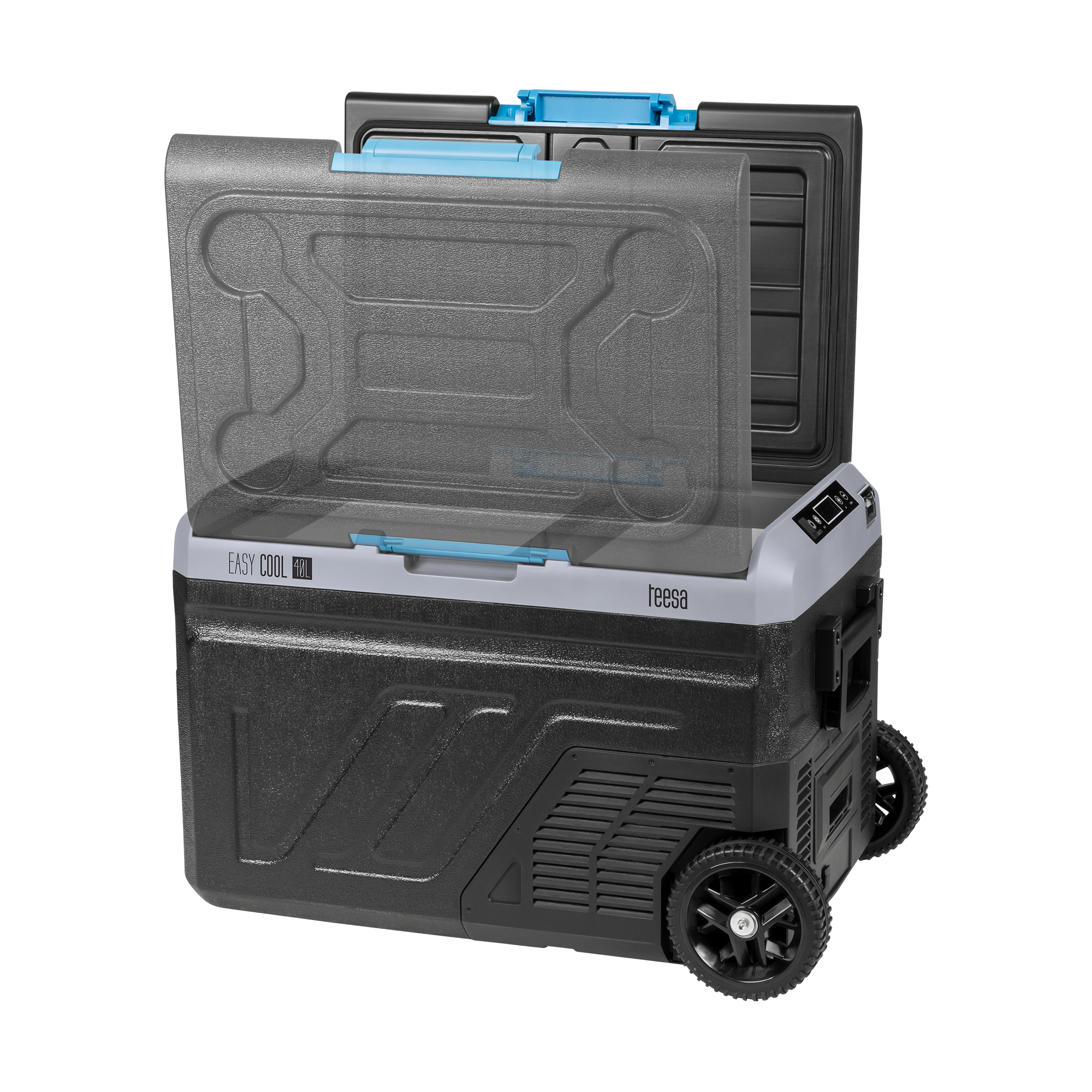 Mobilna lodówka turystycznaLodówka Teesa została wyposażona w wysuwany uchwyt i wygodne kółka, co ułatwia transport nawet przy pełnym załadunku. Mobilna konstrukcja pozwala bez wysiłku przenosić ją z samochodu na miejsce biwakowe lub taras. Stabilne kółka i ergonomiczny uchwyt zapewniają komfort i bezpieczeństwo użytkowania w każdym terenie.