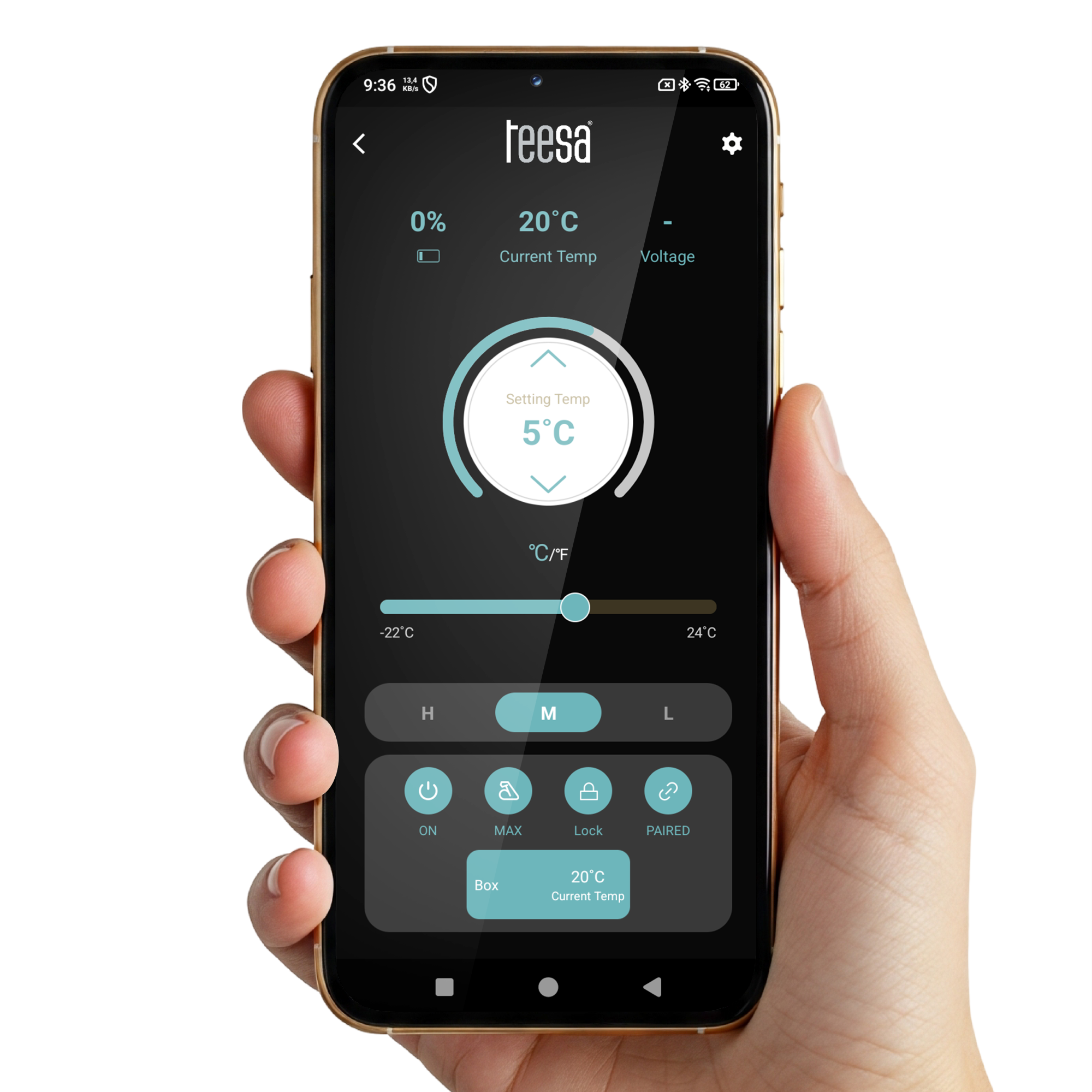 Funkcja mrożenia Lodówka Teesa zapewnia pełną kontrolę temperatury od -20°C do +20°C – umożliwiając zarówno szybkie chłodzenie napojów, jak i bezpieczne mrożenie żywności. Inteligentny system automatycznie utrzymuje ustawioną temperaturę, chroniąc świeżość produktów, oszczędzając energię i gwarantując wygodę podczas każdej podróży.