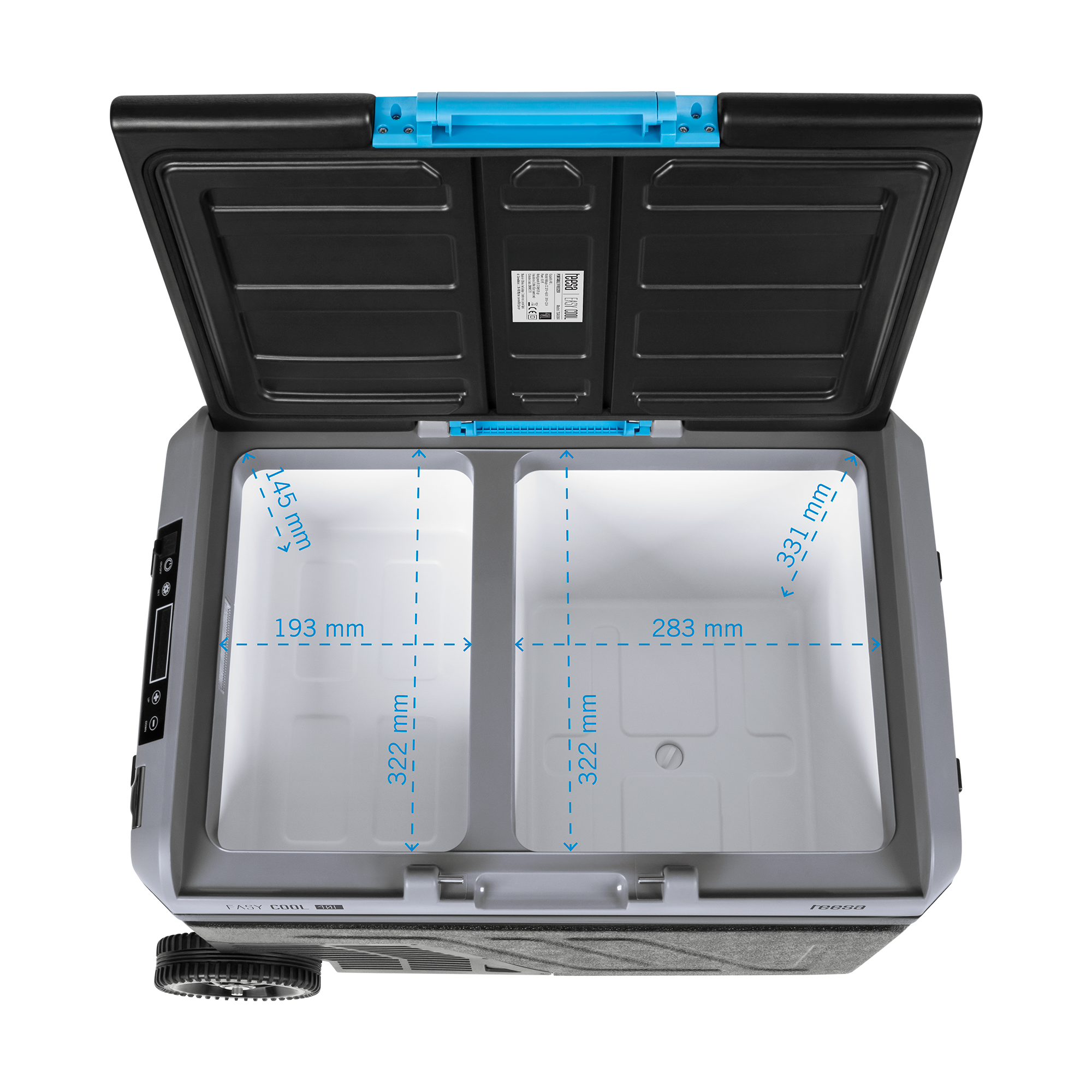 Praktyczne udogodnienia Pokrywa lodówki jest zdejmowana i otwierana z obu stron, co zwiększa wygodę użytkowania w różnych sytuacjach. Dzięki temu dostęp do produktów jest szybki i prosty, nawet w ciasnym aucie czy na biwaku. Funkcja zdejmowanej pokrywy ułatwia też czyszczenie i optymalne wykorzystanie całej komory.