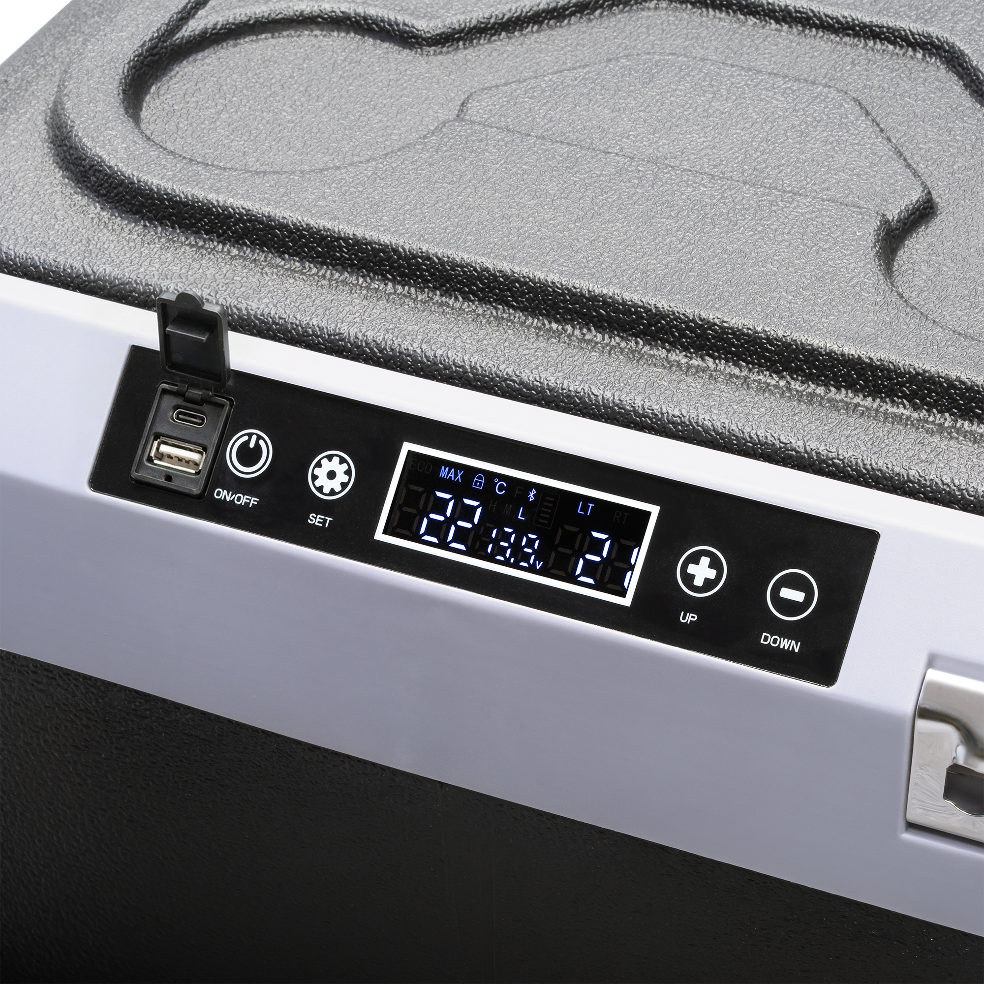 Dotykowy panel sterowaniaIntuicyjny wyświetlacz LED oraz dotykowy panel sterowania pozwalają na precyzyjne ustawienie temperatury i trybu pracy. Panel posiada automatyczną blokadę, tryb Eco oraz ochronę przed rozładowaniem akumulatora pojazdu. Obsługa jest prosta, szybka i nowoczesna, dzięki czemu każdy użytkownik może łatwo kontrolować funkcje lodówki.