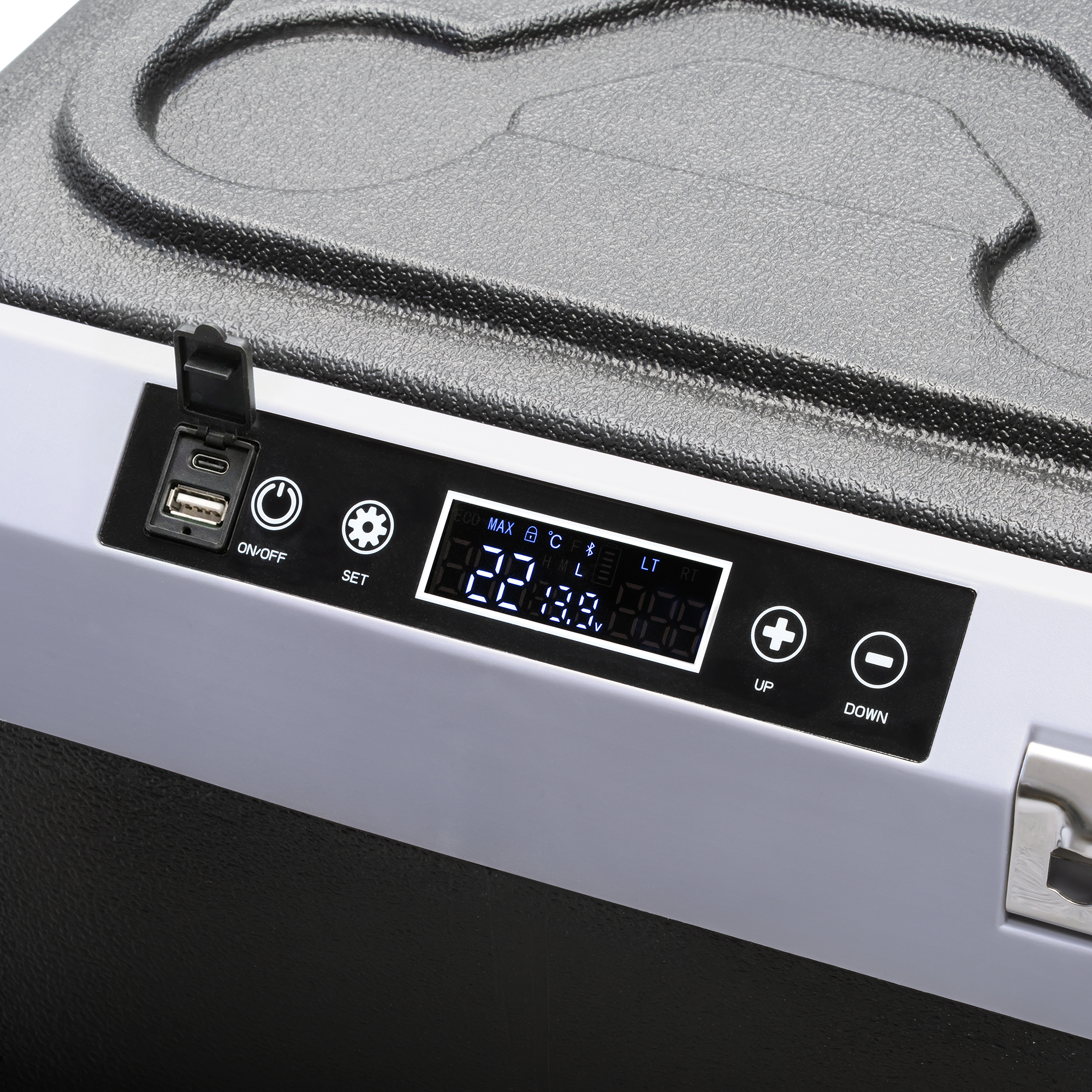 Dotykowy panel sterowaniaIntuicyjny wyświetlacz LED oraz dotykowy panel sterowania pozwalają na precyzyjne ustawienie temperatury i trybu pracy. Panel posiada automatyczną blokadę, tryb Eco oraz ochronę przed rozładowaniem akumulatora pojazdu. Obsługa jest prosta, szybka i nowoczesna, dzięki czemu każdy użytkownik może łatwo kontrolować funkcje lodówki.