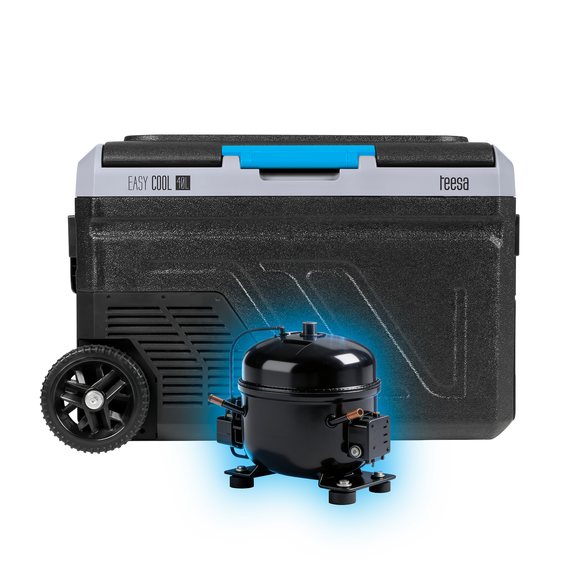 Lodówka kompresorowaWyposażona w nowoczesny system kompresorowy, lodówka Teesa zapewnia wydajne i szybkie chłodzenie nawet w wysokich temperaturach otoczenia. Kompresor umożliwia stabilne utrzymanie temperatury od -22°C do +24°C, minimalizując wahania i gwarantując świeżość produktów, niezależnie od miejsca i warunków podróży.