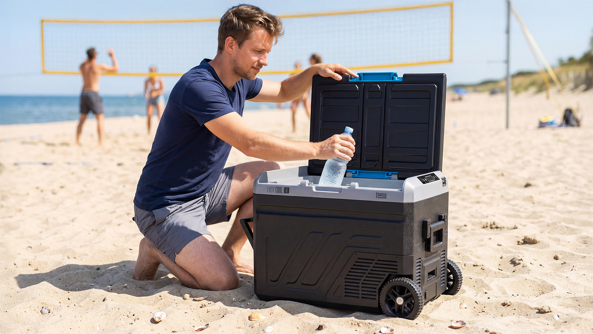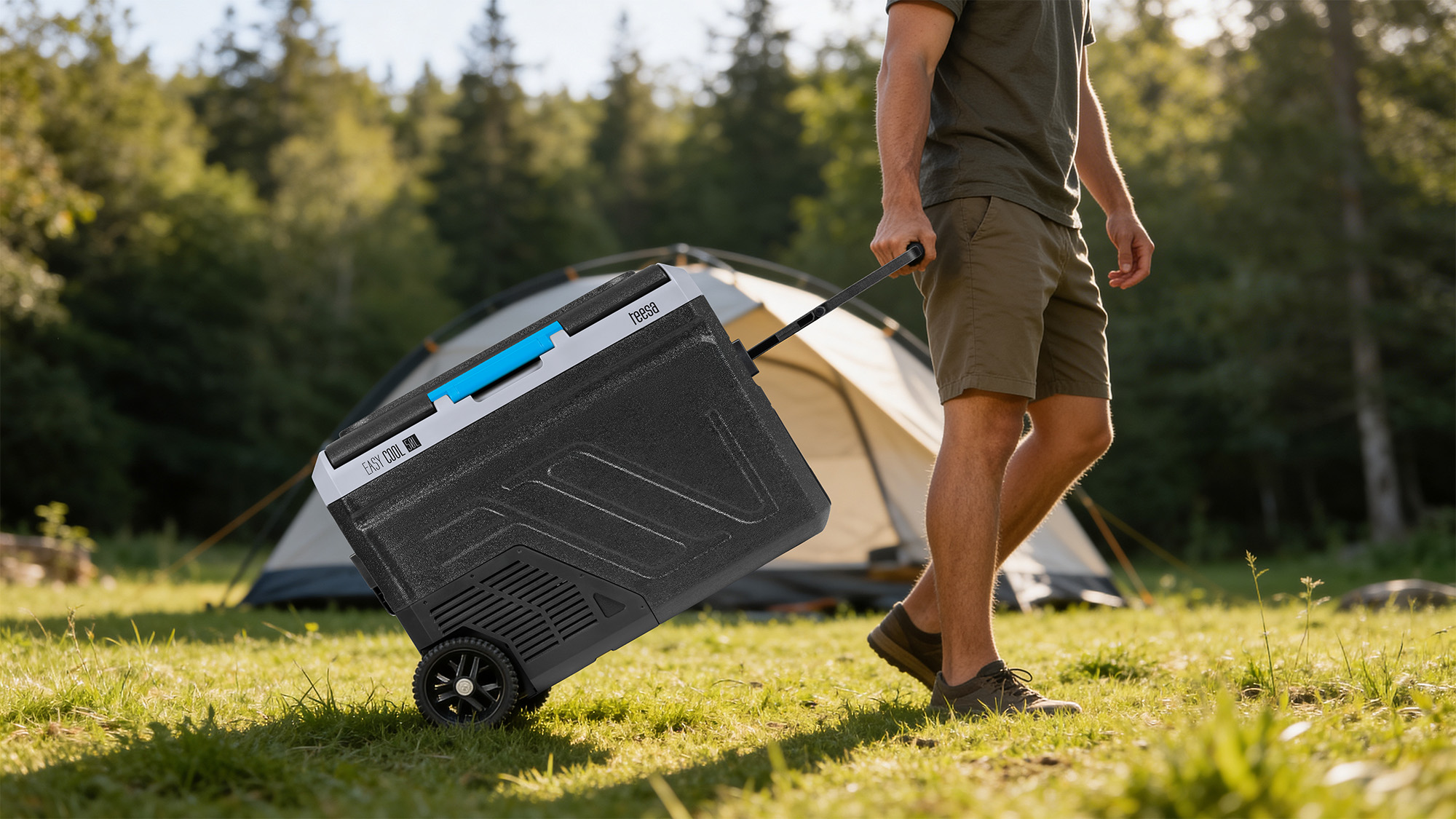 Mobilna lodówka turystycznaLodówka Teesa została wyposażona w wysuwany uchwyt i wygodne kółka, co ułatwia transport nawet przy pełnym załadunku. Mobilna konstrukcja pozwala bez wysiłku przenosić ją z samochodu na miejsce biwakowe lub taras. Stabilne kółka i ergonomiczny uchwyt zapewniają komfort i bezpieczeństwo użytkowania w każdym terenie.