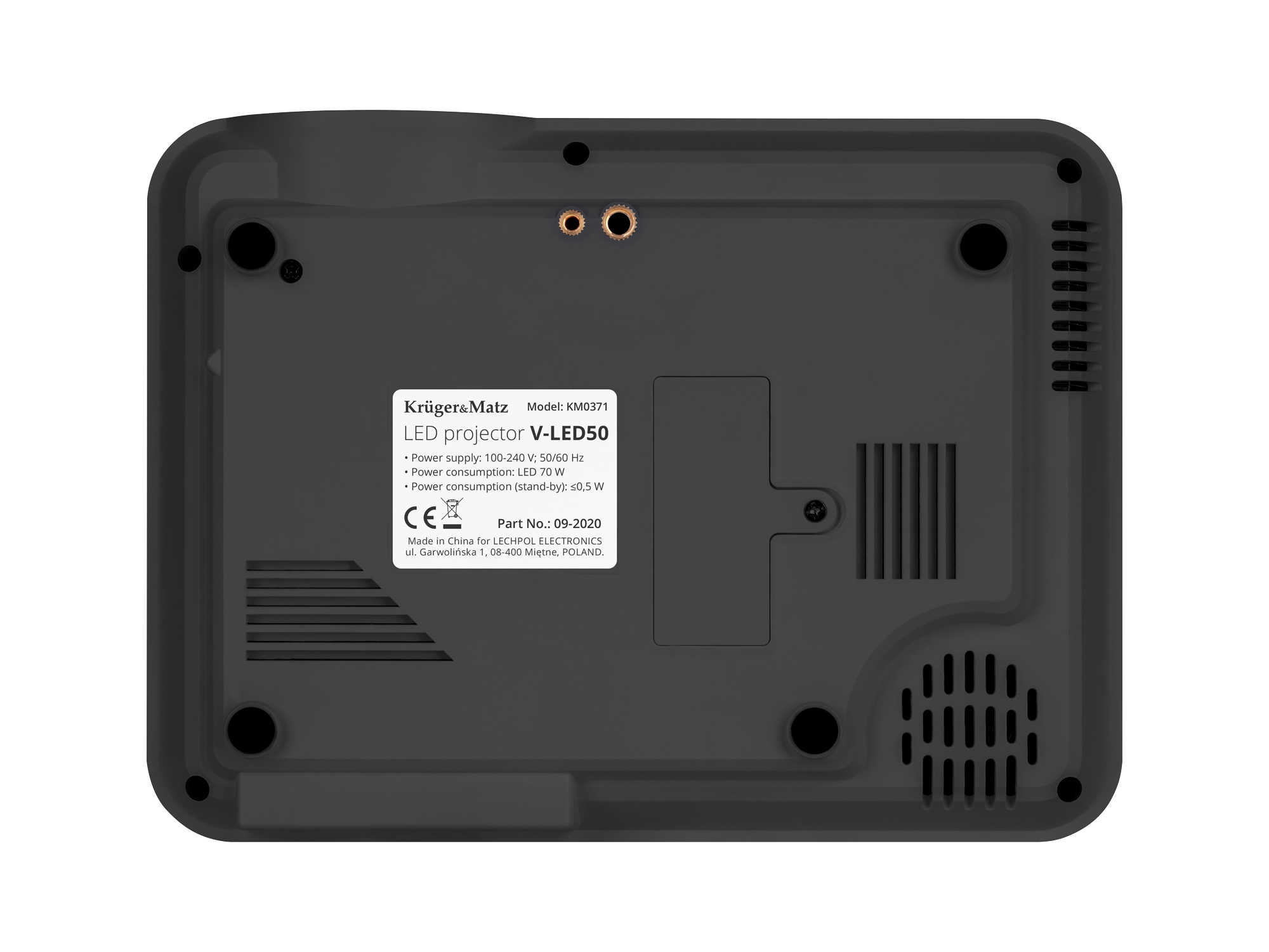 Nie masz miejsca na półce czy stoliku? To żaden problem! Na spodzie projektora Kruger&Matz V-LED50 znajdziesz dwa gwinty, które umożliwiają montaż projektora do tripoda lub uchwytu.