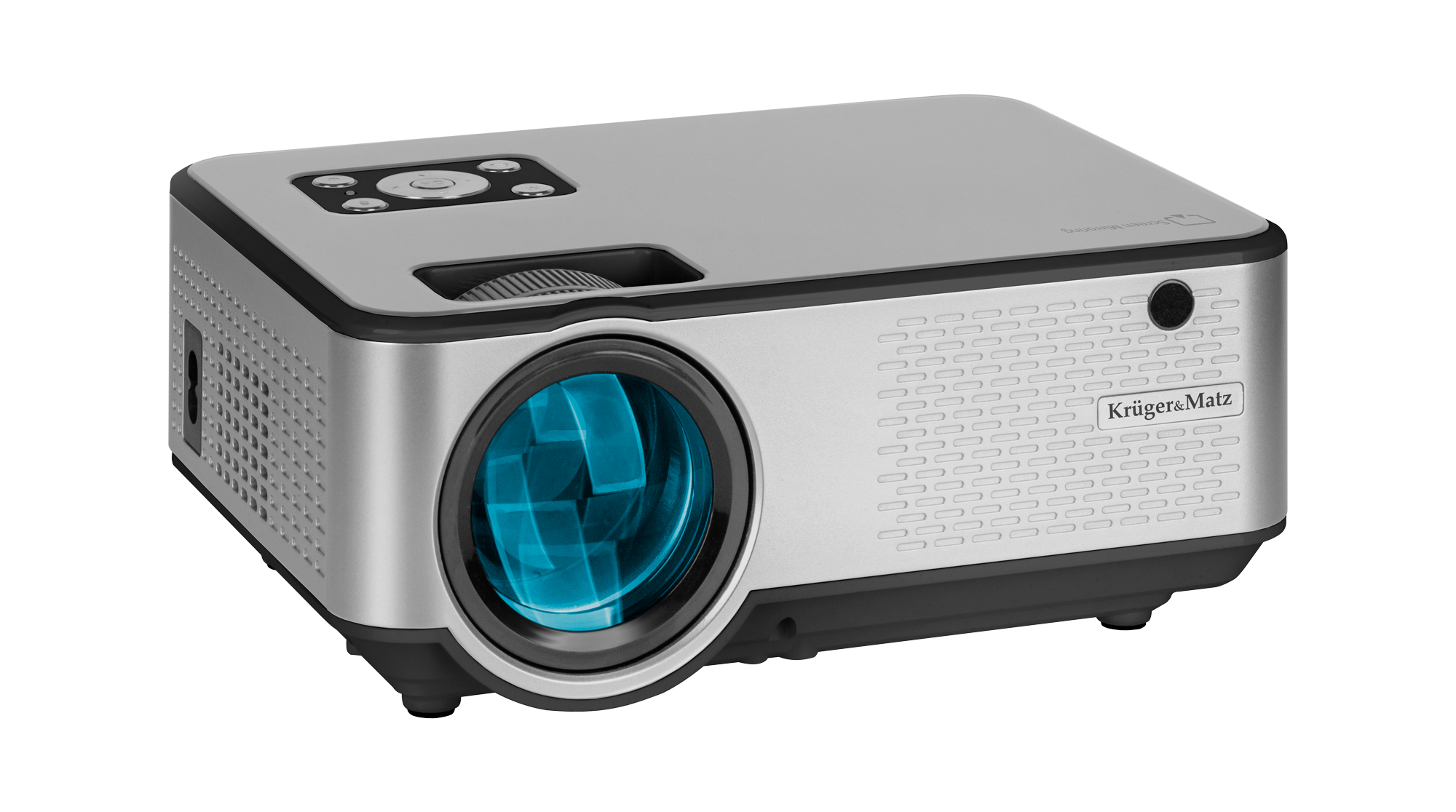 Projektor multimedialny LED Kruger&Matz został wyposażony w dwa pokrętła, którymi wygodnie dostosujesz ustawienia obrazu do własnych wymagań. Pierwszym ręcznie ustawisz ostrość, natomiast drugie pozwoli na korekcję zniekształceń trapezowych.