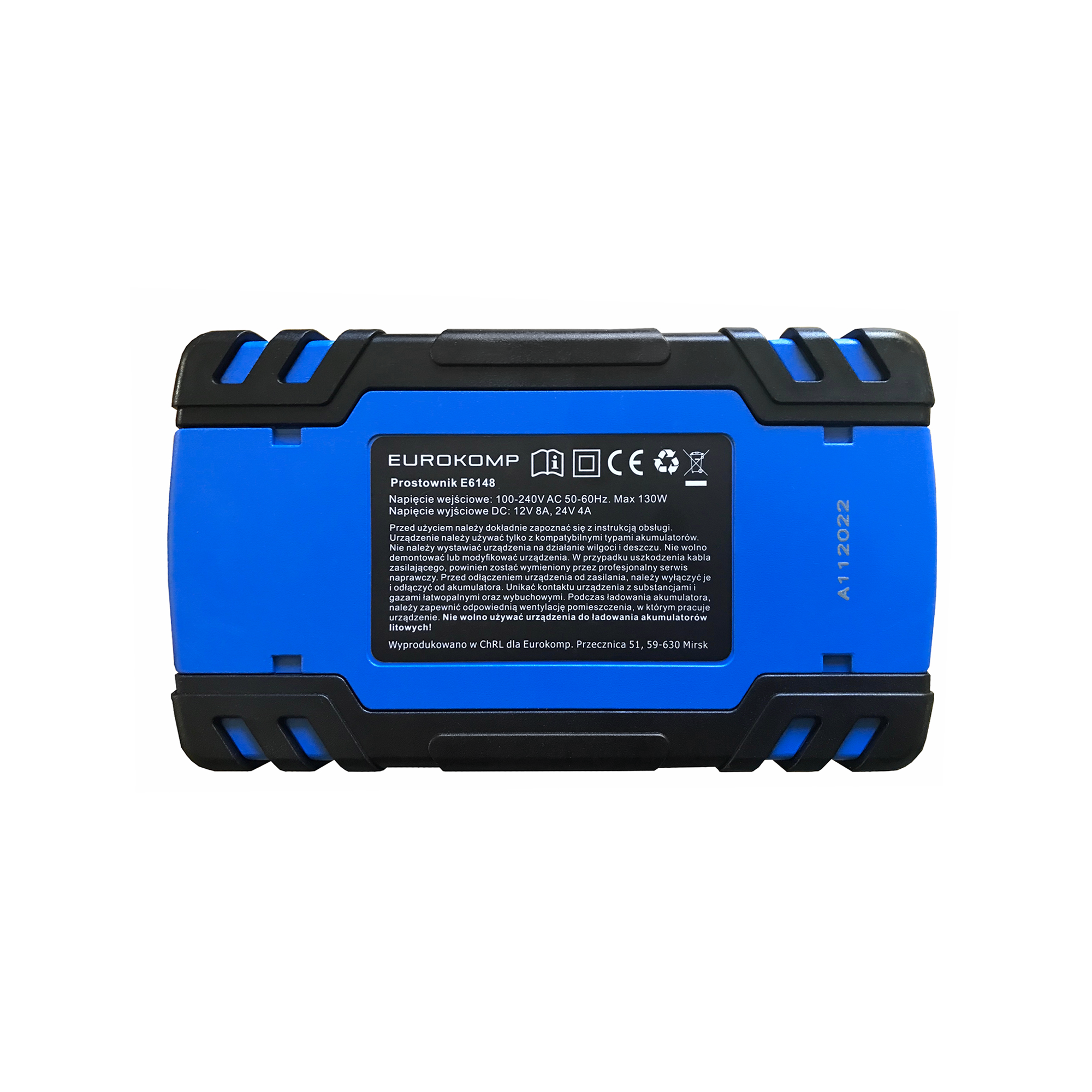 Prostownik automatyczny mikroprocesorowy 12V 8A/24V 4A 130W EurokompWysokiej jakości prostownik automatyczny mikroprocesorowy, pozwalający na ładowanie akumulatorów instalowanych m.in. w: - samochodach osobowych,