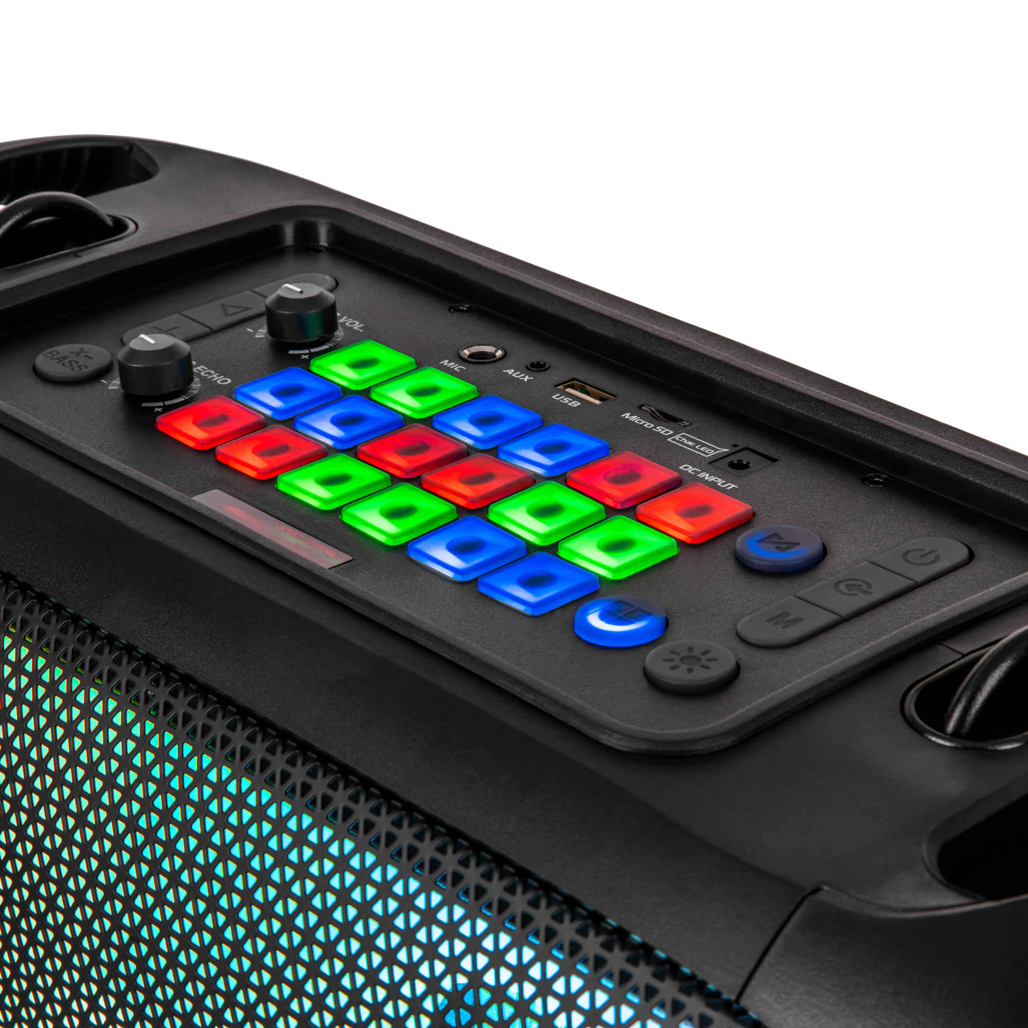 Głośnik boombox na imprezę KM0560Nie lubisz, gdy na domówce wieje nudą? Wybierz głośnik BT, który pomoże Ci rozkręcić imprezę. Music Box Party DJ, z dwoma przetwornikami 6,5” i jednym 1,5” o łącznej mocy 30 W, pomoże Ci rozkręcić każdą zabawę. Daj się ponieść rytmom Twoich ulubionych piosenek!