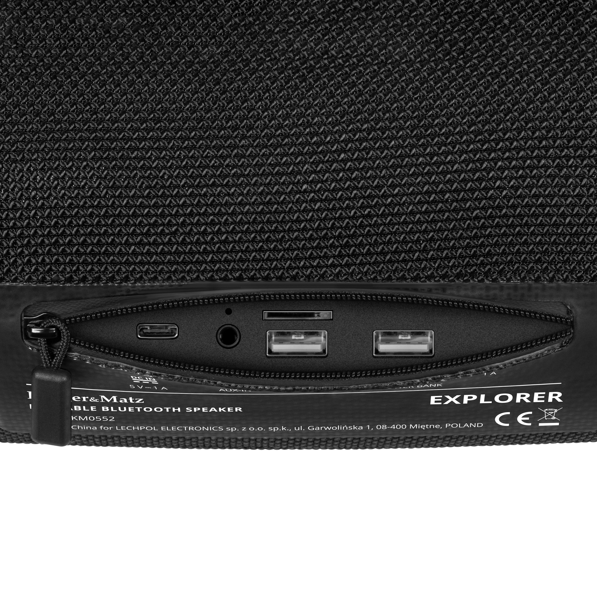 Głośnik z mikrofonemW głośnikach Bluetooth ważna jest także dodatkowa funkcjonalność. Mając to na uwadze, głośnik przenośny Kruger&Matz Explorer został wyposażony w dodatkowy port USB, który umożliwia ładowanie urządzeń zewnętrznych. Urządzenie posiada także wbudowany mikrofon, który umożliwi Ci obsługę połączeń głosowych. Ponadto, model ten posiada także funkcję True Wireless Stereo, dzięki której będziesz mógł połączyć ze sobą dwa głośniki Explorer, podwajając dawkę muzyki.