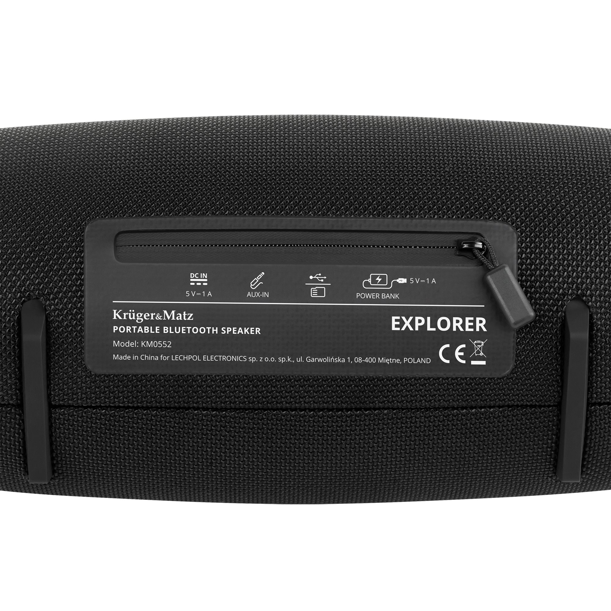 Bezprzewodowy głośnik Bluetooth Kruger&Matz ExplorerNie możesz się zdecydować jaki głośnik Bluetooth wybrać? Kruger&Matz Explorer to urządzenie, które sprawdzi się w każdej sytuacji – idealny do domu, na imprezę w plenerze, a dzięki dołączonemu paskowi, będzie także doskonałym towarzyszem podczas spaceru. Ten głośnik bezprzewodowy Bluetooth został wyposażony w trzy przetworniki – niskotonowy i dwa wysokotonowe - które pozwalają odtwarzać muzykę w paśmie przenoszenia 60 Hz ~ 20 kHz. Z kolei wykorzystana w Explorer technologia Bluetooth 5.0 gwarantuje stabilne połączenie oraz niski pobór energii.