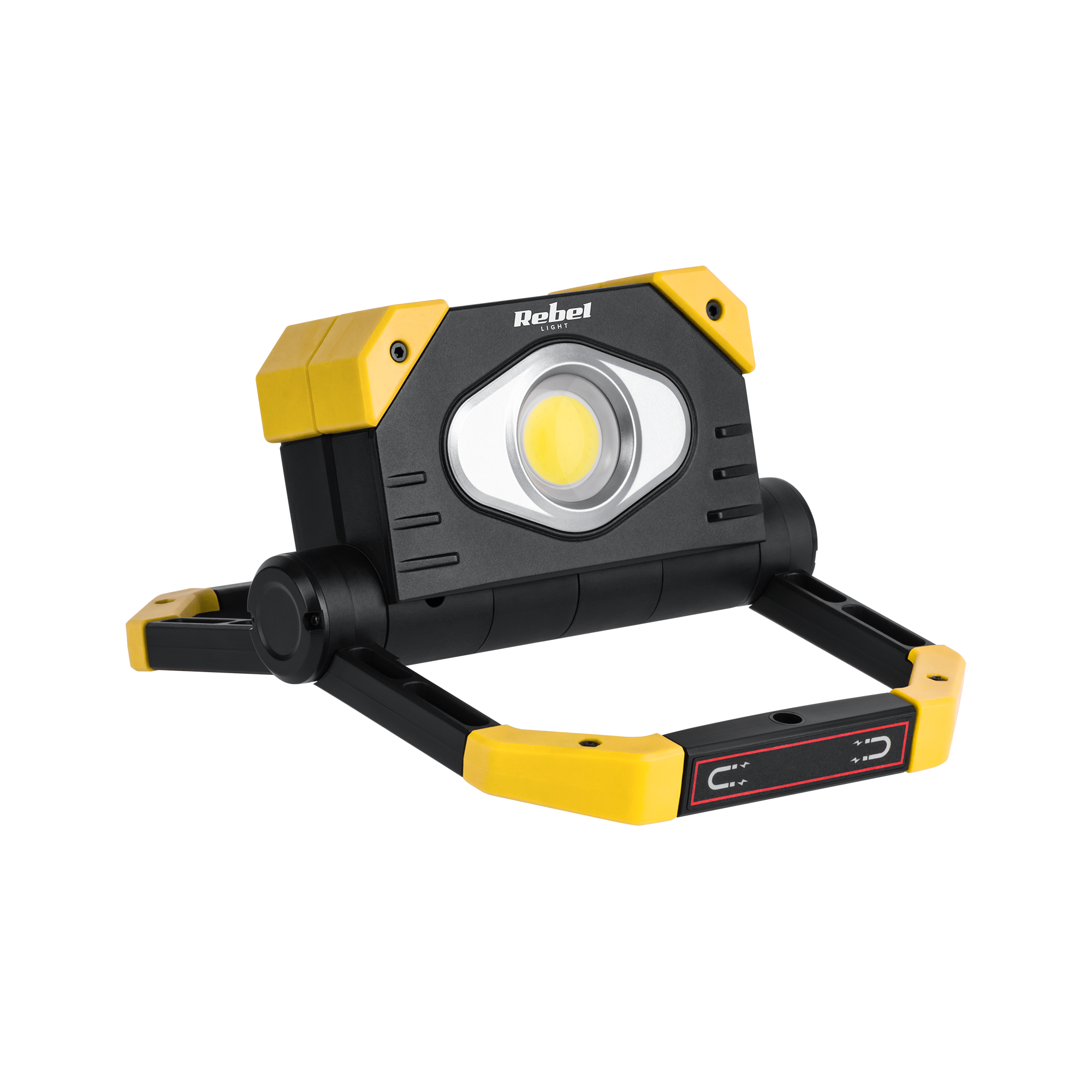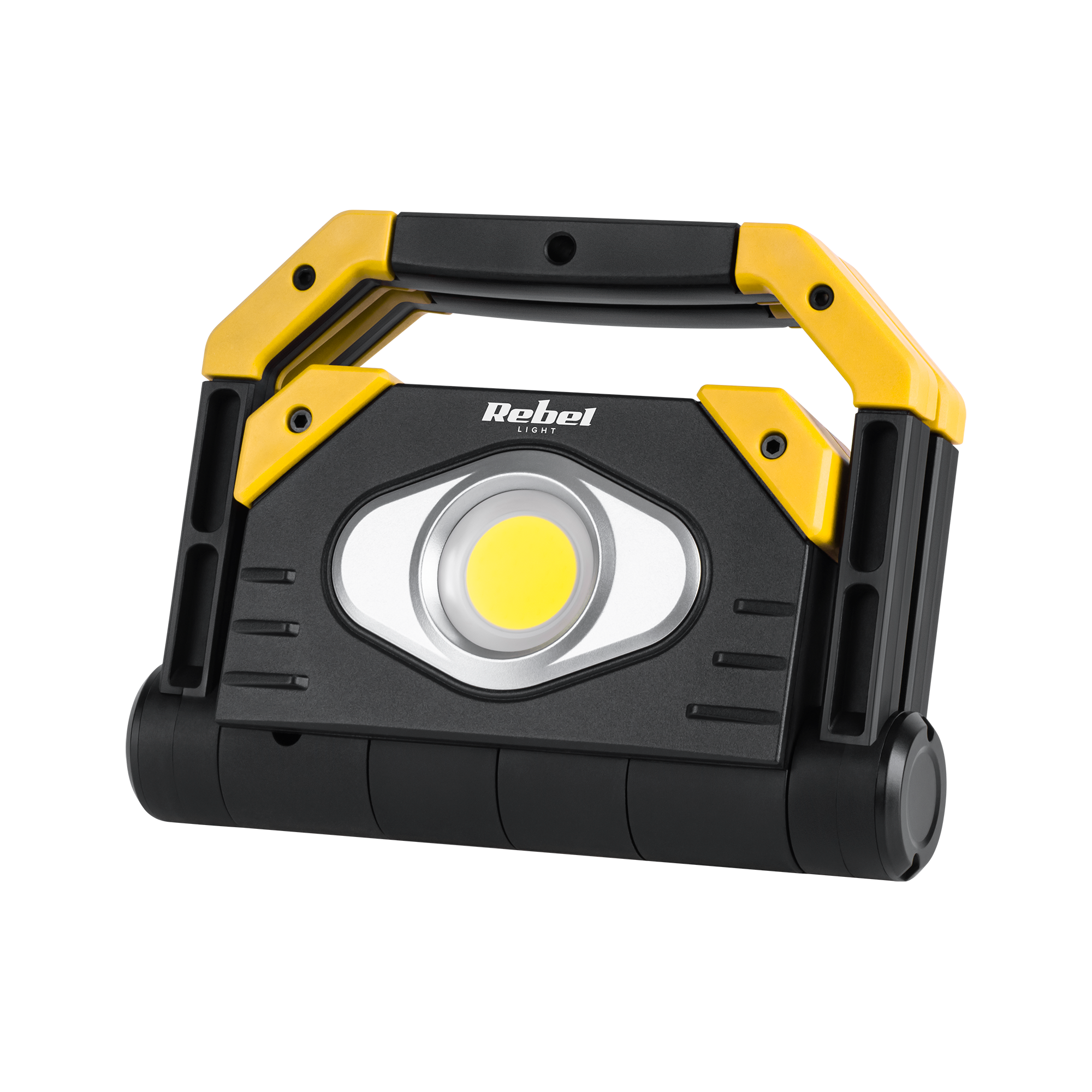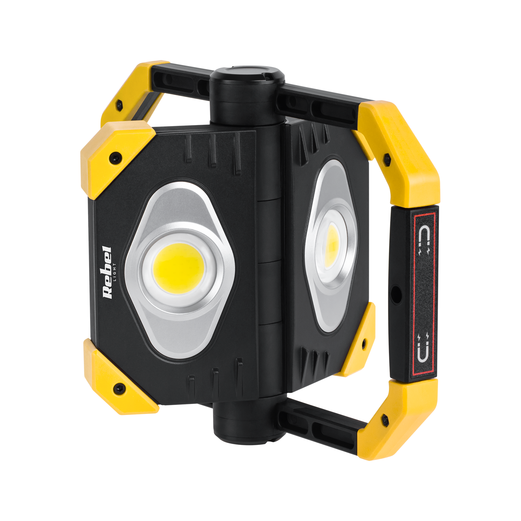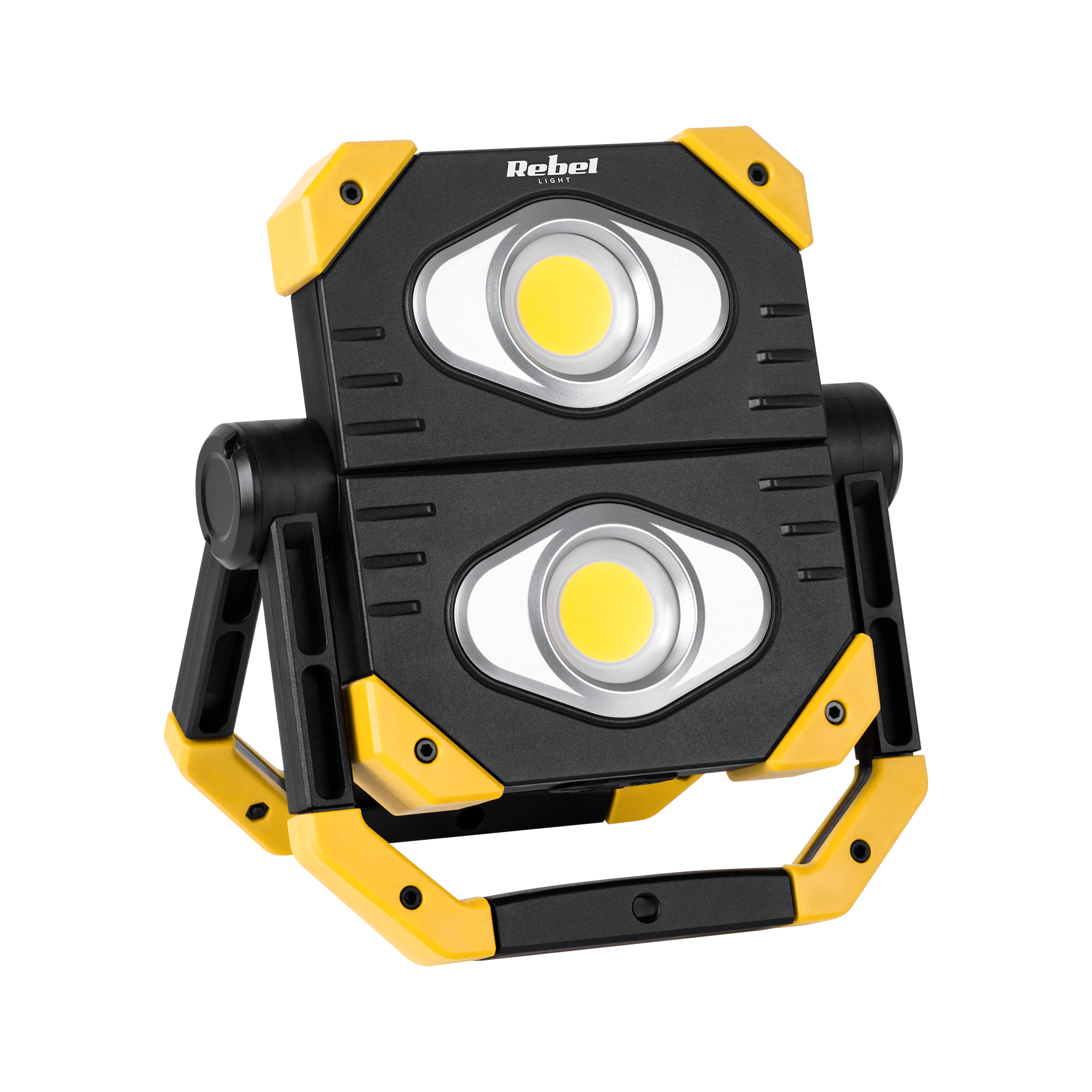 Lampa warsztatowa naświetlacz LED COB akumulatorOdkryj moc i funkcjonalność przenośnego reflektora LED 2XCOB. Wyposażony w dwa źródła światła COB, zapewnia imponujący strumień świetlny 2000 lm przy temperaturze barwowej 6500 K, co gwarantuje jasne i naturalne oświetlenie. Dzięki różnym trybom świecenia – pojedyncza lampa, dwie lampy, miganie – oraz pięciu poziomom mocy światła (20%, 40%, 60%, 80%, 100%), możesz dostosować intensywność oświetlenia do swoich potrzeb. Wbudowany wskaźnik naładowania akumulatora oraz funkcja power bank zapewniają dodatkowe wygody, umożliwiając ładowanie innych urządzeń i monitorowanie stanu baterii.