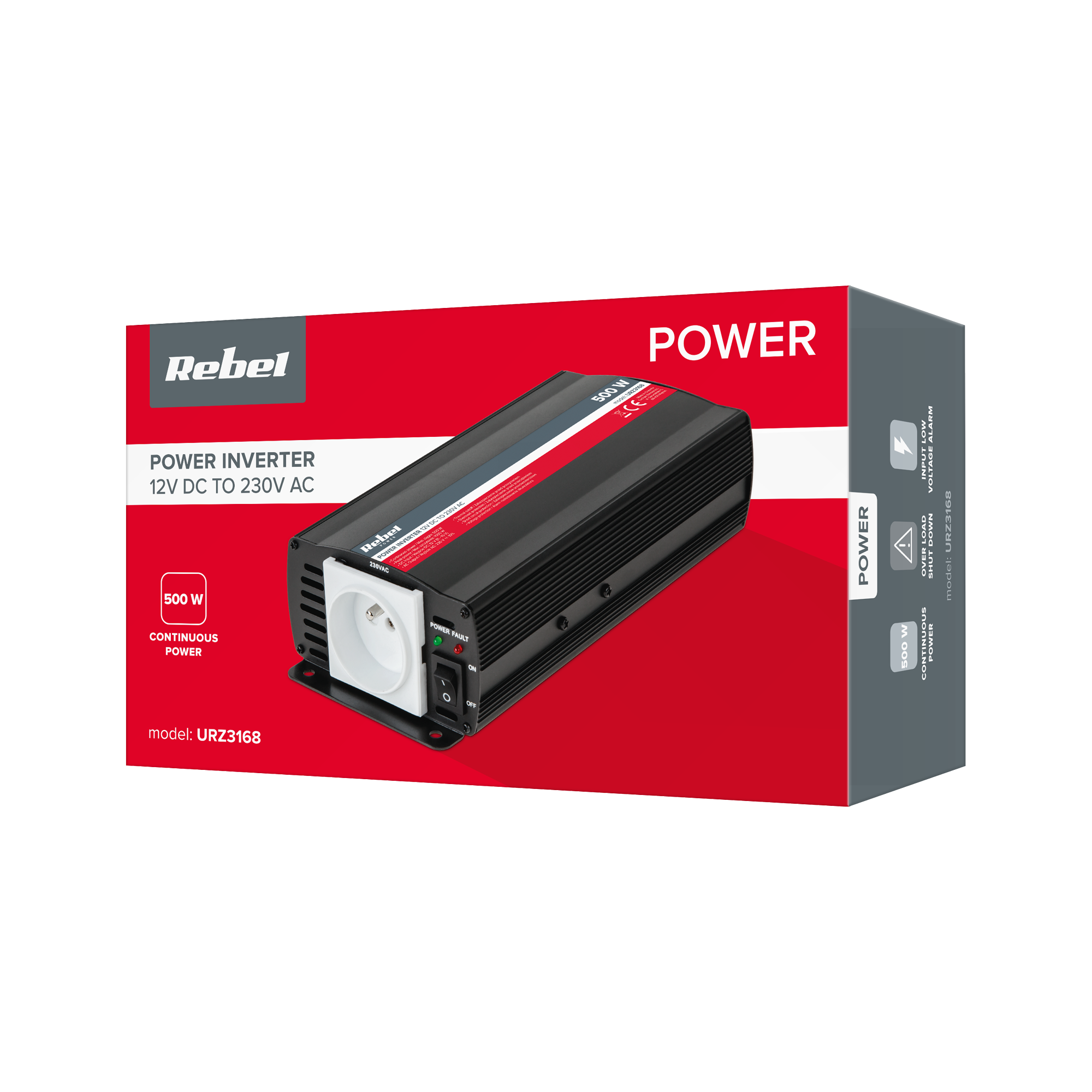 Przetwornica REBEL 12V/230V 500WPrzetwornica REBEL to niezawodne rozwiązanie dla osób, które potrzebują dostarczyć energię do urządzeń zasilanych z sieci 230 V, korzystając z zasilania 12 V. Idealna podczas podróży, kempingów, czy w sytuacjach awaryjnych, przetwornica pozwala na komfortowe korzystanie z urządzeń elektrycznych w miejscach, gdzie nie ma dostępu do tradycyjnej sieci energetycznej.