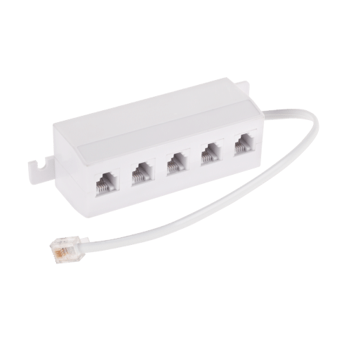 Rozgałęziacz tel.: wtyk 6P4C - 5x gniazdo 6P4C Kolor: biały Pobierz instrukcję obsługi Kod EAN: 5901436719434 |