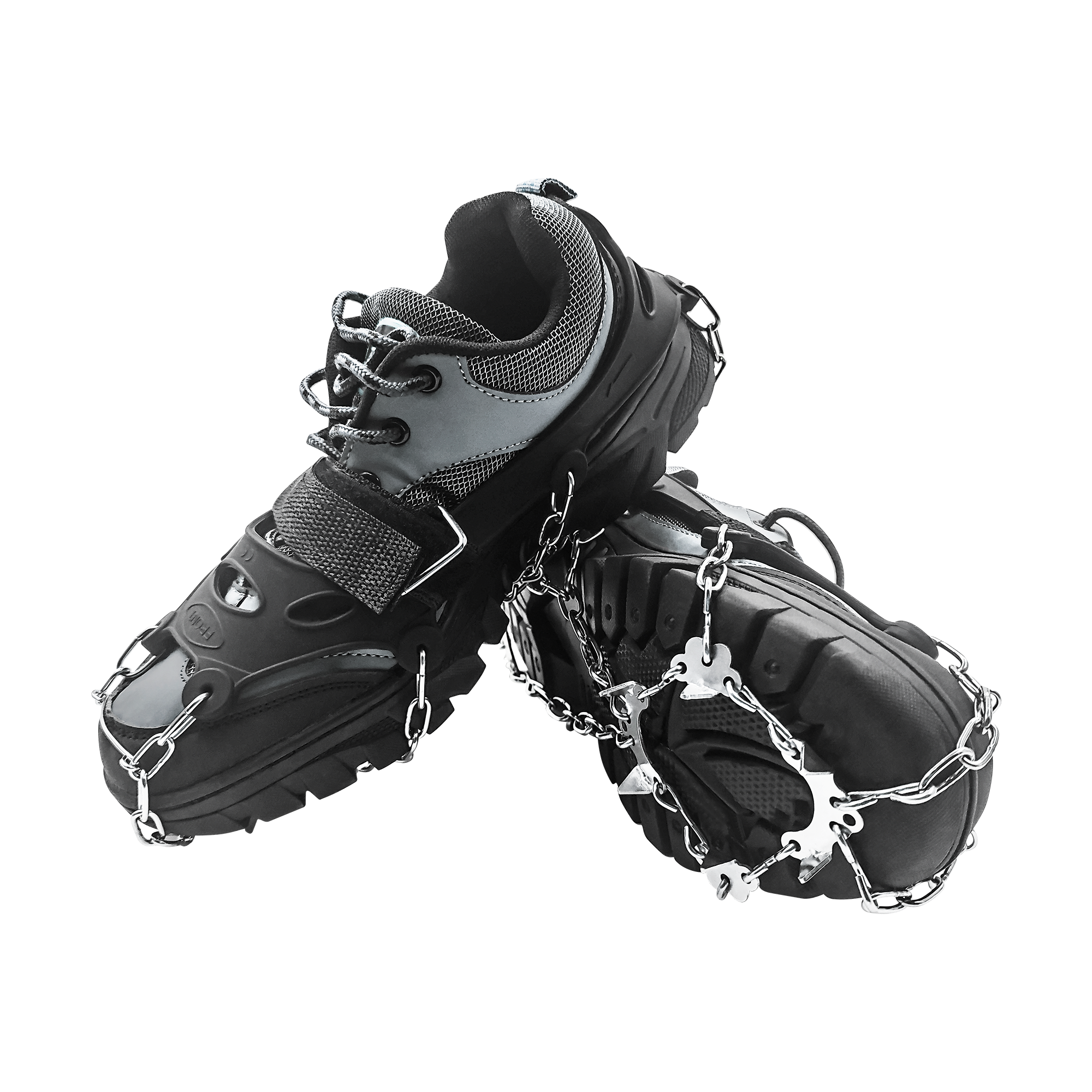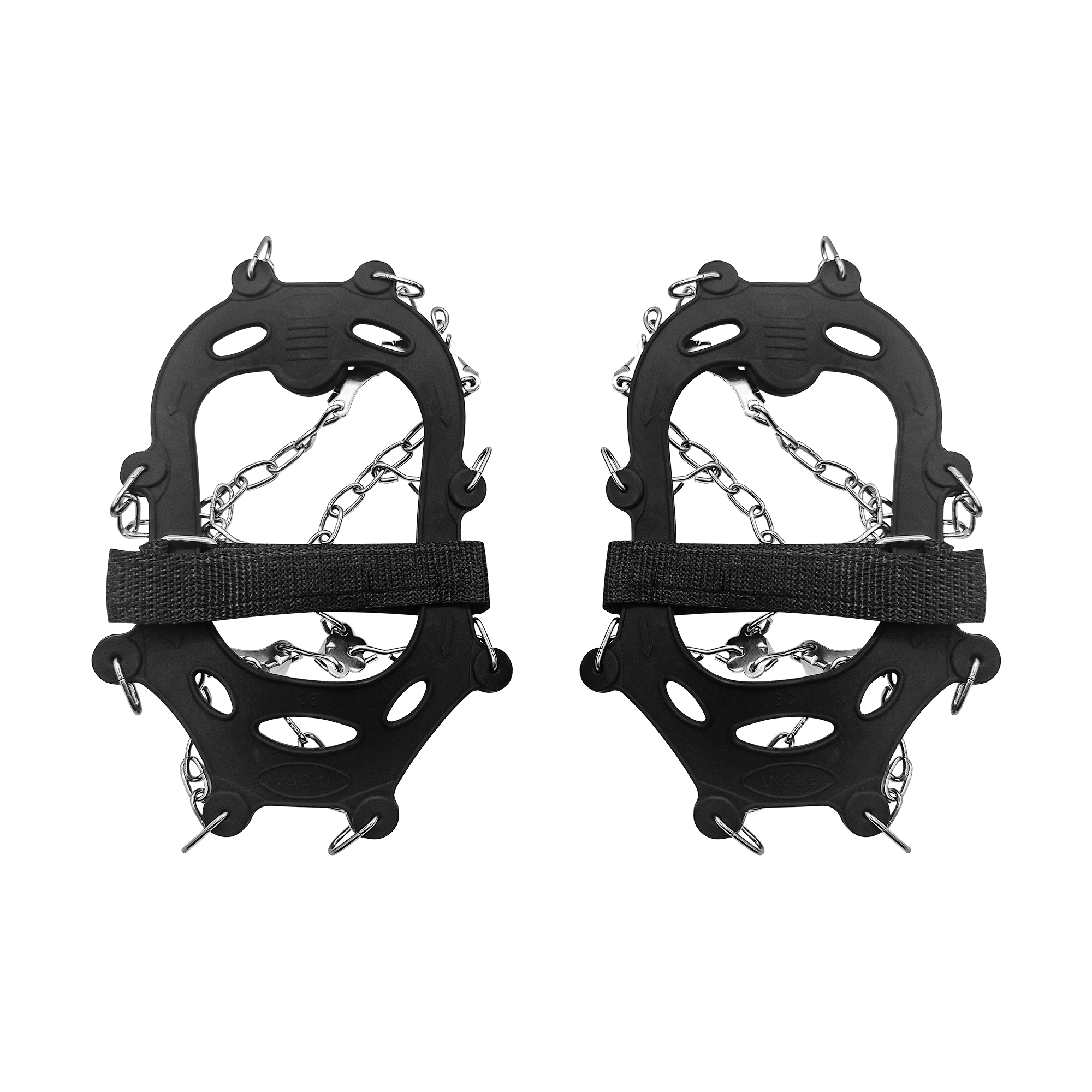 Bezpieczeństwo i trwałośćRaczki są wyposażone w 9 stalowych kolców o wysokości 14 mm, które gwarantują doskonałą przyczepność na lodzie i śniegu. Kolce oraz łańcuchy są wykonane ze stali nierdzewnej, co zapewnia ich długotrwałość oraz odporność na korozję. Silikonowa obejma zapewnia elastyczne i wygodne dopasowanie do butów, co zwiększa komfort użytkowania.