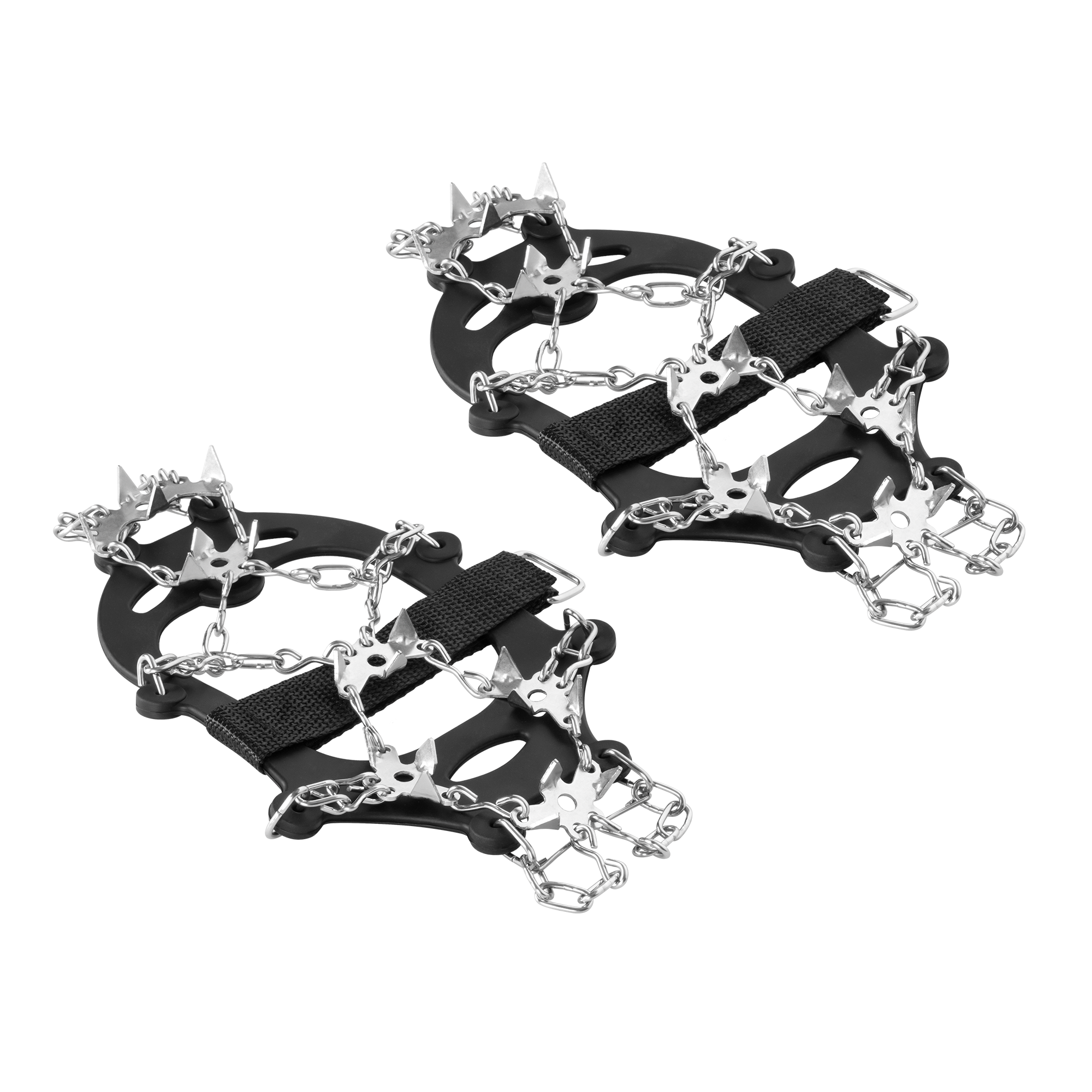 Raczki są wyposażone w 19 stalowych kolców o wysokości 14 mm, które gwarantują doskonałą przyczepność na lodzie i śniegu. Kolce oraz łańcuchy są wykonane ze stali nierdzewnej, co zapewnia ich długotrwałość oraz odporność na korozję. Silikonowa obejma zapewnia elastyczne i wygodne dopasowanie do butów, co zwiększa komfort użytkowania.