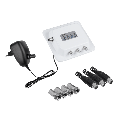 Wyposażenie standardowe: nakręcany wtyk F, zasilacz z separatorem ZZA-7