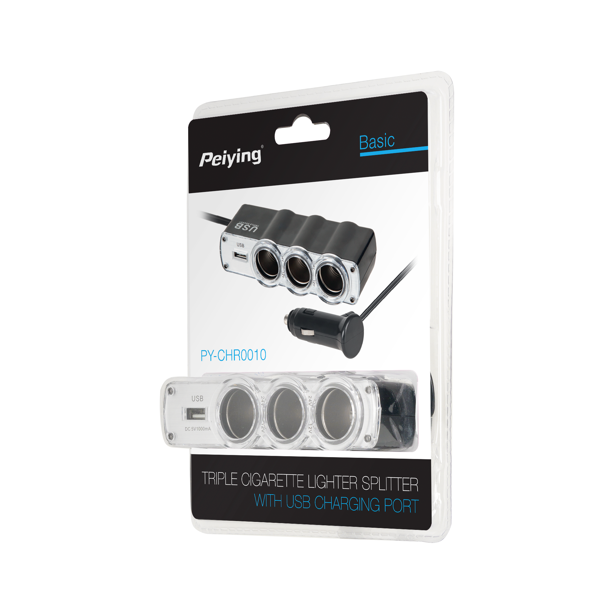 Wielofunkcyjny i wydajnyRozdzielacz oferuje trzy gniazda zapalniczki, które pozwalają na podłączenie różnych urządzeń, takich jak nawigacja, wideorejestrator czy ładowarka do telefonu. Dodatkowy port USB o wyjściu 5 V i prądzie 1000 mA umożliwia ładowanie mniejszych urządzeń mobilnych, takich jak smartfony.