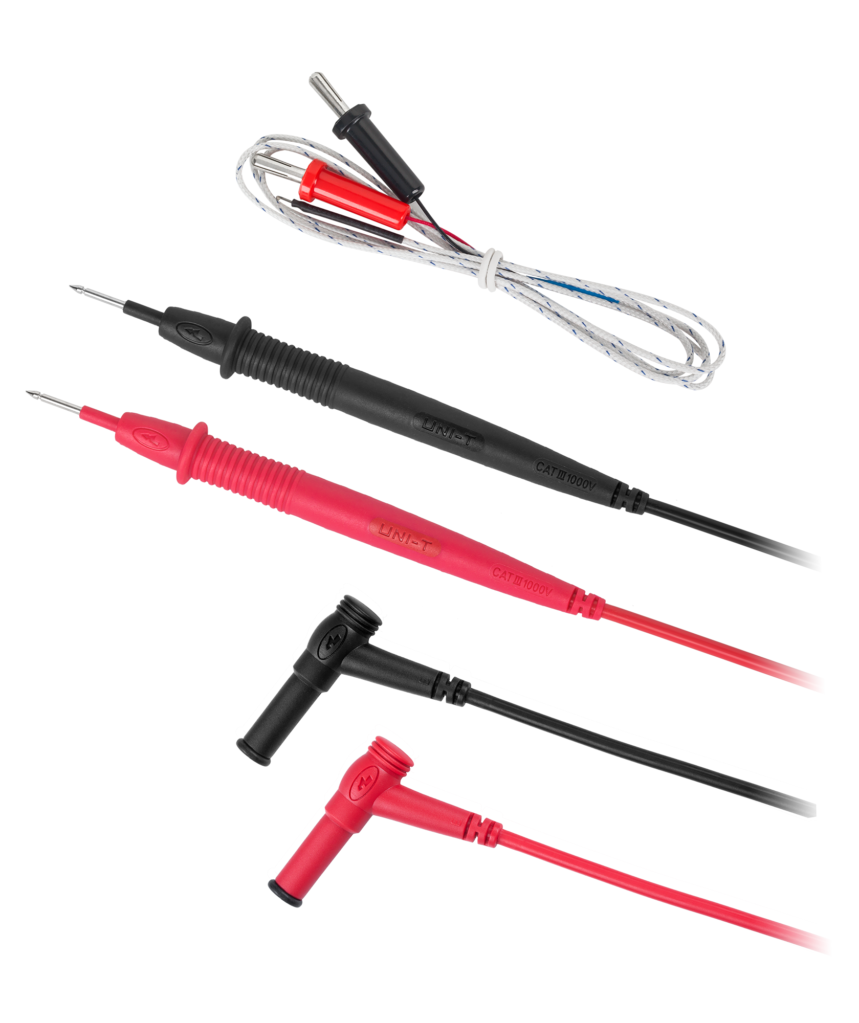 Akcesoria: bateria, przewody pomiarowe, sonda pomiaru temperatury, holster
