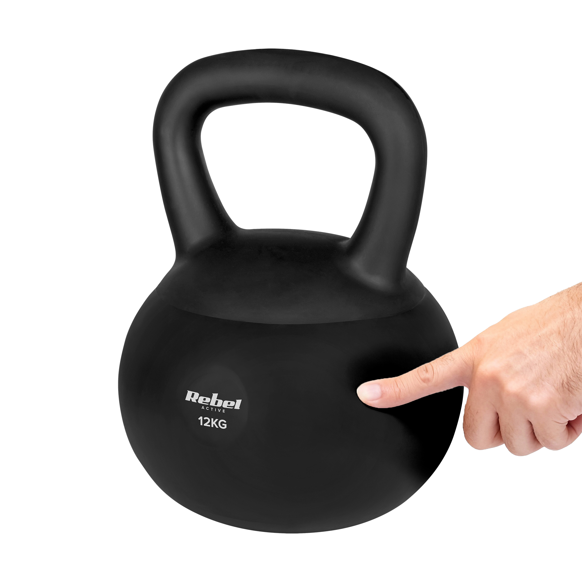 Soft kettlebell 12 kg Rebel Active Zastanawiasz się, jakie kettle kupić? Soft kettlebell z serii Rebel Active to doskonały wybór dla osób, które chcą urozmaicić trening z kettlebells w domu lub na siłowni. Miękka, winylowa powłoka oraz wypełnienie z piasku zapewniają bezpieczeństwo, cichą pracę i ochronę podłoża, dzięki czemu sprzęt sprawdzi się nawet w małych przestrzeniach.