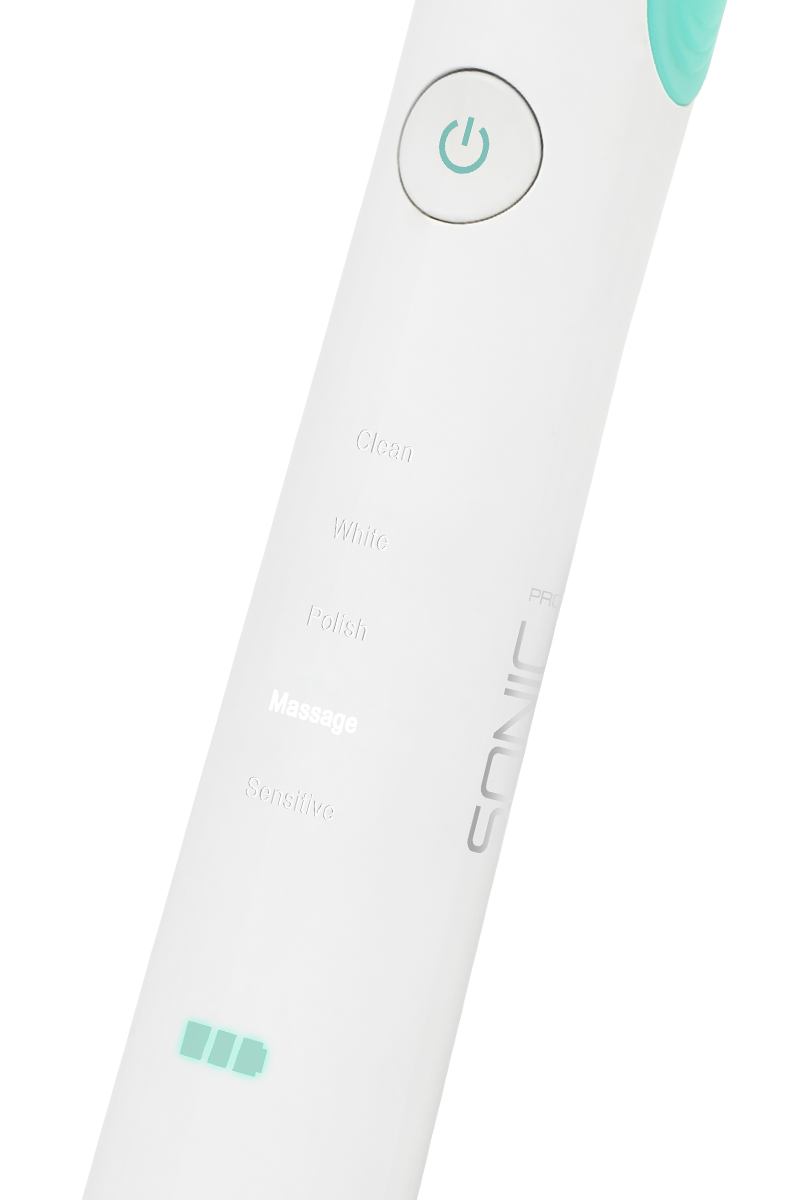 Automatyczne wyłączanieSzczoteczka SONIC PRO to zaawansowane technologicznie urządzenie, które doskonale chroni i pielęgnuje jamę ustną. Co ważne urządzenie pomoże Ci dostosować się do zaleceń stomatologów. Co 30 sekund szczoteczka poinformuje Cię o konieczności zmiany czyszczonej części jamy ustnej, a po upływie dwóch minut automatycznie się wyłączy.
