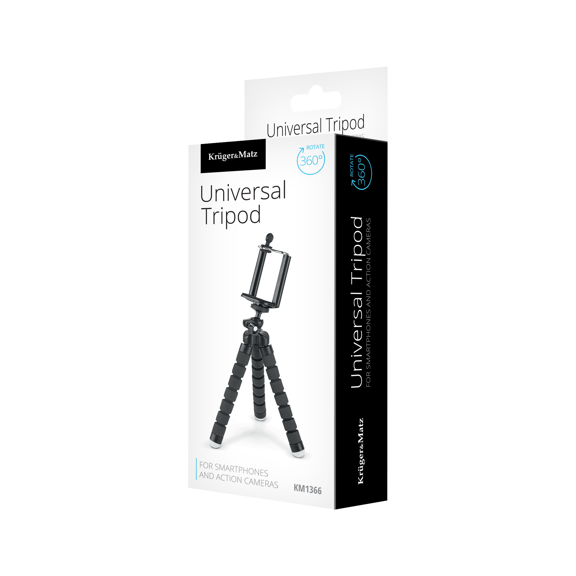 Regulacja i kompaktowośćO odpowiedni kąt uchwytu dba głowica kulowa 3D z blokadą pozycji. Statyw posiada regulowany rozstaw 51-88 mm, dzięki czemu jest uniwersalny, a tym samym dostosowany do każdego smartfona czy kamery sportowej. Do zalet tripoda Kruger&Matz należą także niewielkie rozmiary oraz niska waga, co sprawia, że jest on lekki i kompaktowy, a Ty zmieścisz go w plecaku lub torebce, by mieć go zawsze przy sobie.