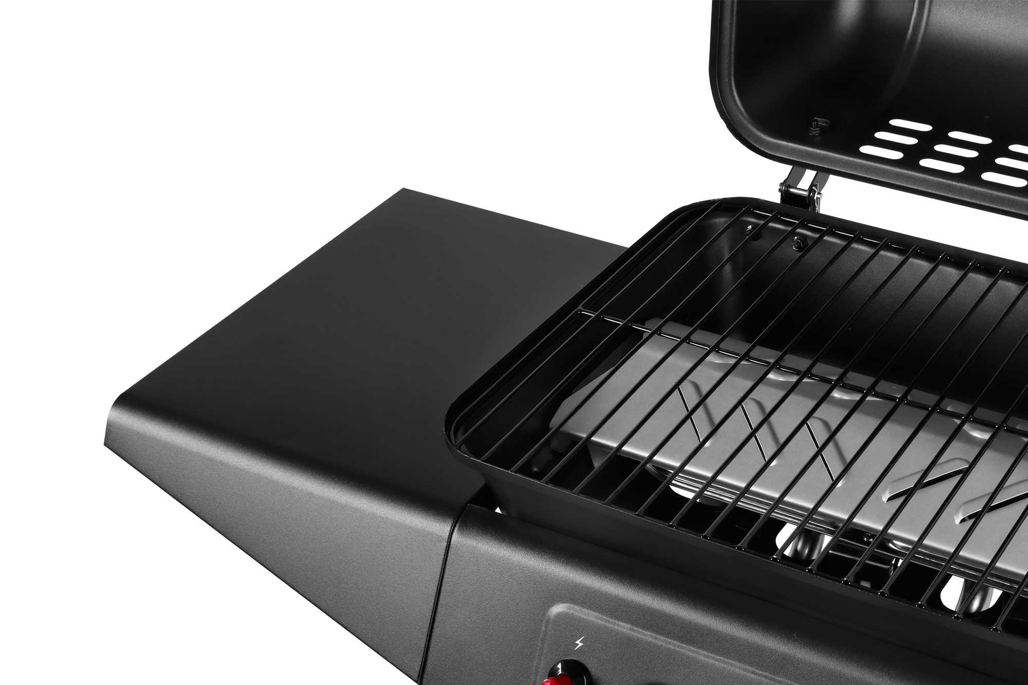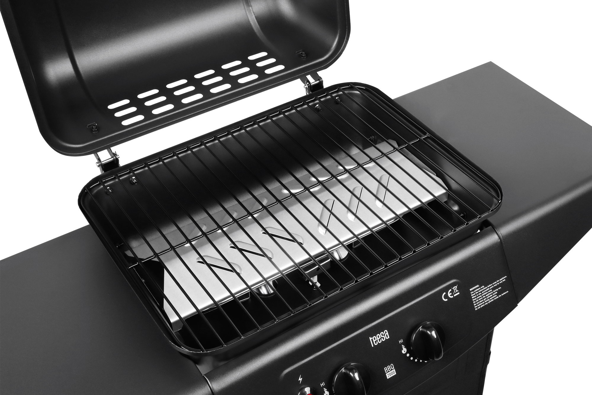 Twój ogrodowy szef kuchniMasz ochotę spędzić miło czas z rodziną? Zamień domową kanapę na słoneczne podwórko i koniecznie zaskocz najbliższych przepysznymi grillowanymi potrawami. Grill gazowy Teesa został wyposażony w dwa palniki ze stali nierdzewnej o łącznej mocy 5 kW, dzięki którym wszystkie Twoje przekąski, w tym mięsa i warzywa będą doskonale i równomiernie wysmażone.