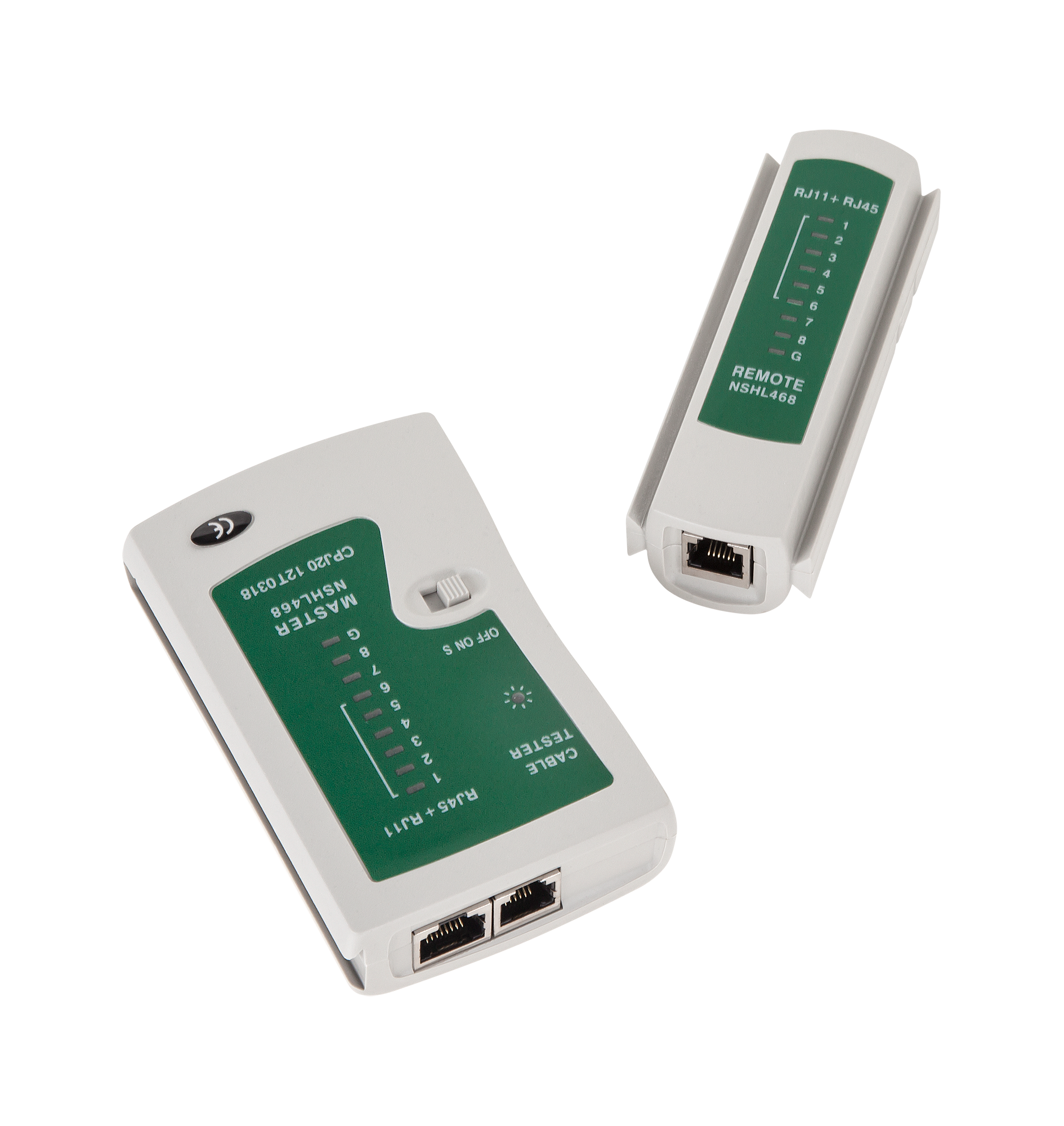Tester przeznaczony do testowania okablowania sieciowego RJ45 typu: UTP, FTP, STP oraz kabli telefonicznych typu: RJ11 oraz RJ12.