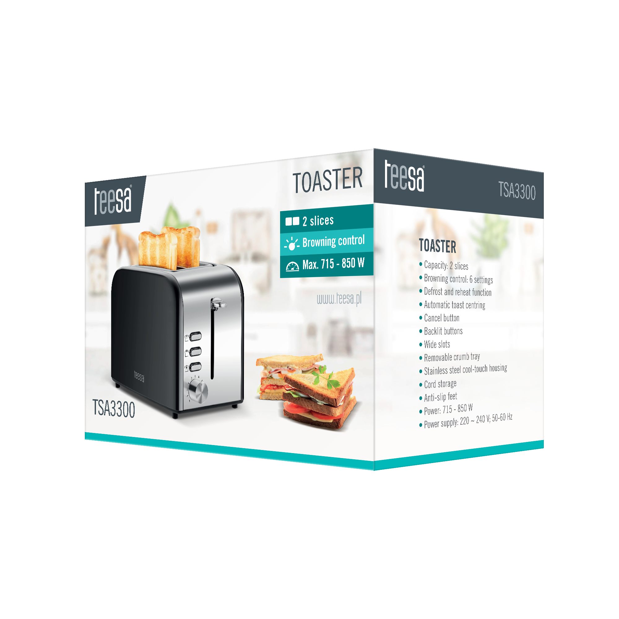 Bezpieczny, estetyczny i wygodny!Sprawdź jak komfortowe i bezpieczne jest przygotowywanie przekąsek tosterem Teesa. Obudowa wykonana z wysokiej jakości stali nierdzewnej nie tylko sprawia, że będzie się on ładnie prezentował w Twojej kuchni, ale też zapobiega nagrzewaniu się urządzenia, co zwiększa bezpieczeństwo w czasie użytkowania. Dodatkowo, dzięki antypoślizgowym nóżkom, masz pewność, że toster nie będzie się przesuwać, ani ślizgać po blacie. Wysuwana tacka na okruchy znacznie ułatwi czyszczenie, a schowek na przewód pozwoli Ci wygodnie przechowywać produkt, zachowując nienaganną estetykę.